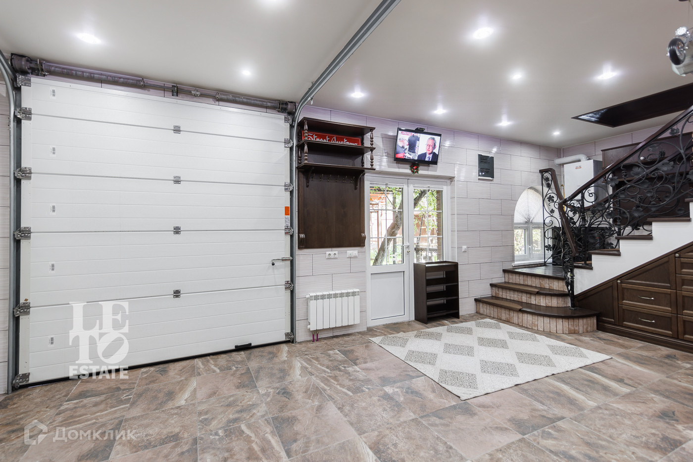 Первый этаж: прихожая, кухня, столовая, ванная, санузел, гараж на одну машину. Помещение в стиле Open Space.