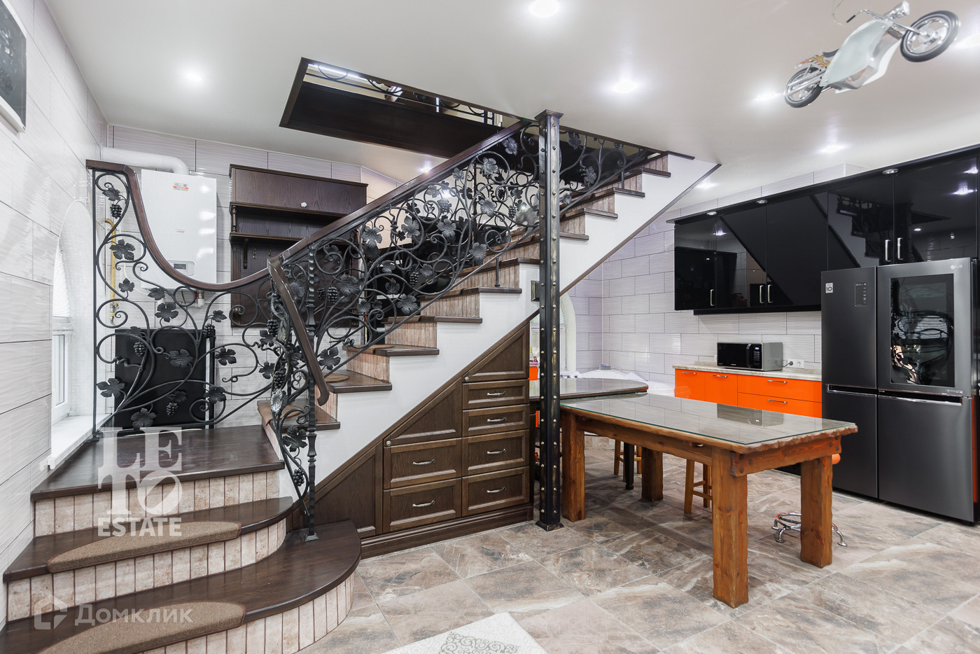 Первый этаж: кухня, СПА зона с бассейном и сауной, санузел гостевой.