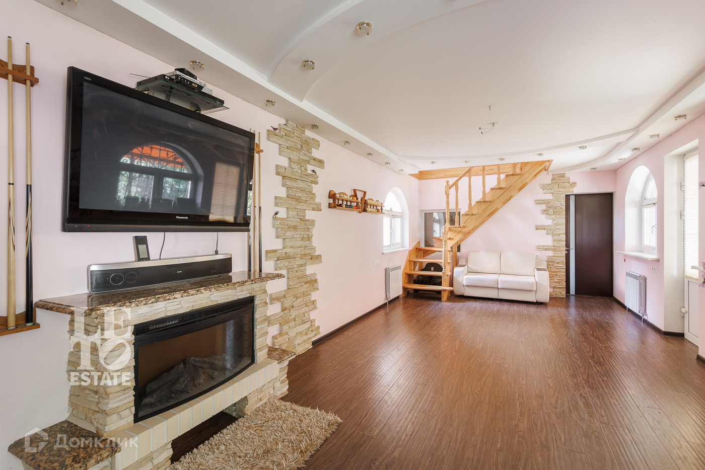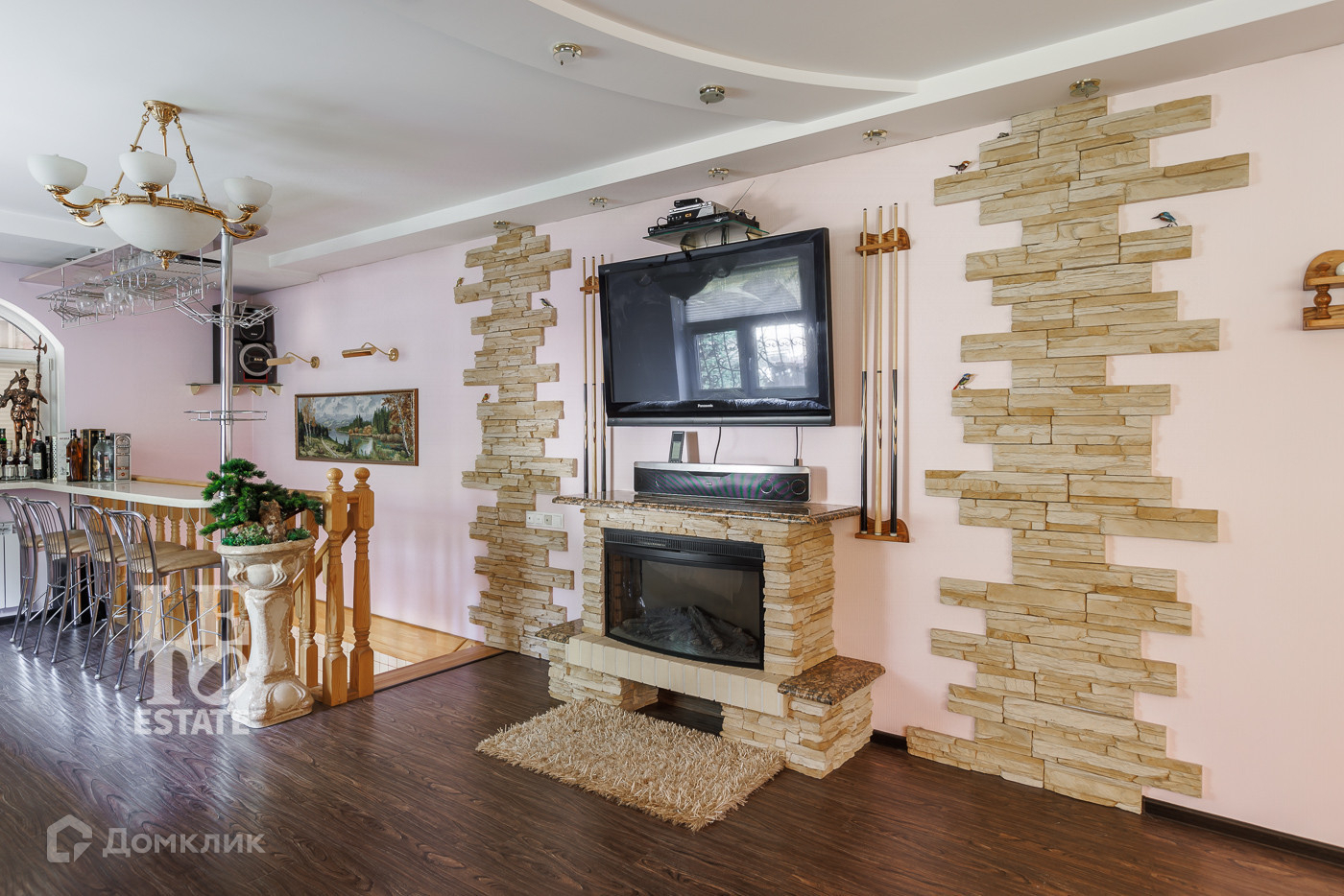 Второй этаж: гостиная с камином, спальня.
