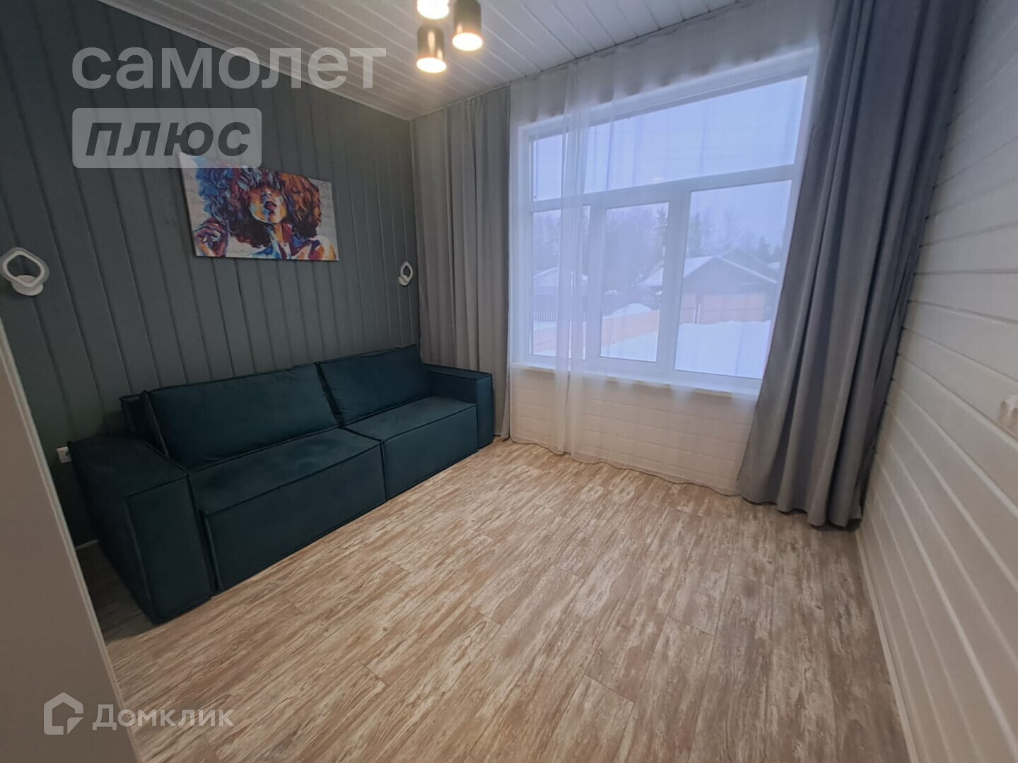 Oбшивкa домa cнаружи - пpoфнастил 0.5 и лиственничный планкен. Внутри - имитация бруса с окраской в 3 слоя.