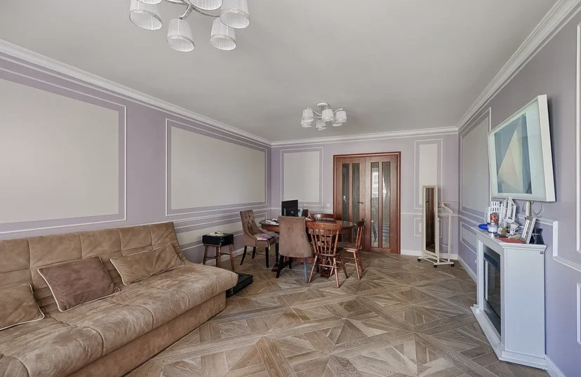 Ищете большую, просторную, светлую квартиру в красивом доме? Тогда вы нашли именно ее! В нашей трёхкомнатной квартире помимо удобства вы увидите интересные дизайнерские решения, полы из натурального дуба, пол с подогревом, замечательный балкон с местом для хранения ваших вещей, ванную комнату с интереснейшей планировкой и многое другое. Для реализации ремонта в данной квартире были использованы дорогие натуральные материалы, а хозяева руководствовались принципом Никакой IKEA. В детской комнате художником была выполнена картина Маша и Медведь,  а в ванной комнате и прихожей вы сможете заметить вставки из немецкой мозаики. Большая комната участвовала в программе Школа ремонта. Вся техника и мебель остаётся в квартире, собственники забирают исключительно личные вещи.