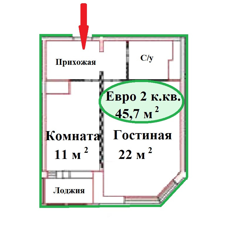 Общая площадь 45.7 м2