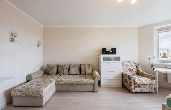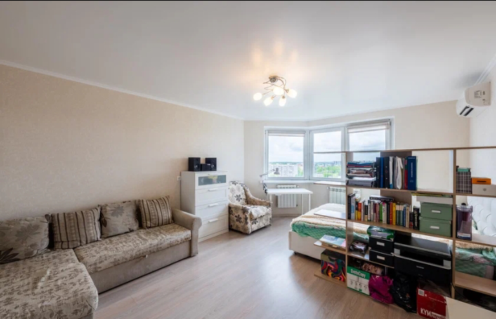 Просторная комната и кухня, утепленный балкон с панорамным остеклением, большая ванная и вместительная кладовая-гардеробная. Квартира оснащена водонагревателем, электронной системой контроля утечек воды, видеодомофоном. В квартире две «мокрые точки», благодаря чему можно без особых усилий переделать однушку в евродвушку.