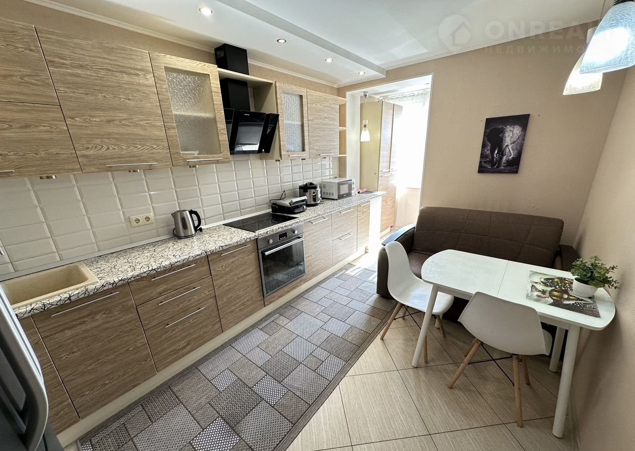 Полноценная кухня. Ремонт выполнен в едином стиле и цветовой гамме из дорогих и качественных материалов. Пол - керамогранит (санузел, лоджия, прихожая с подогревом), в спальне европейский паркет.
