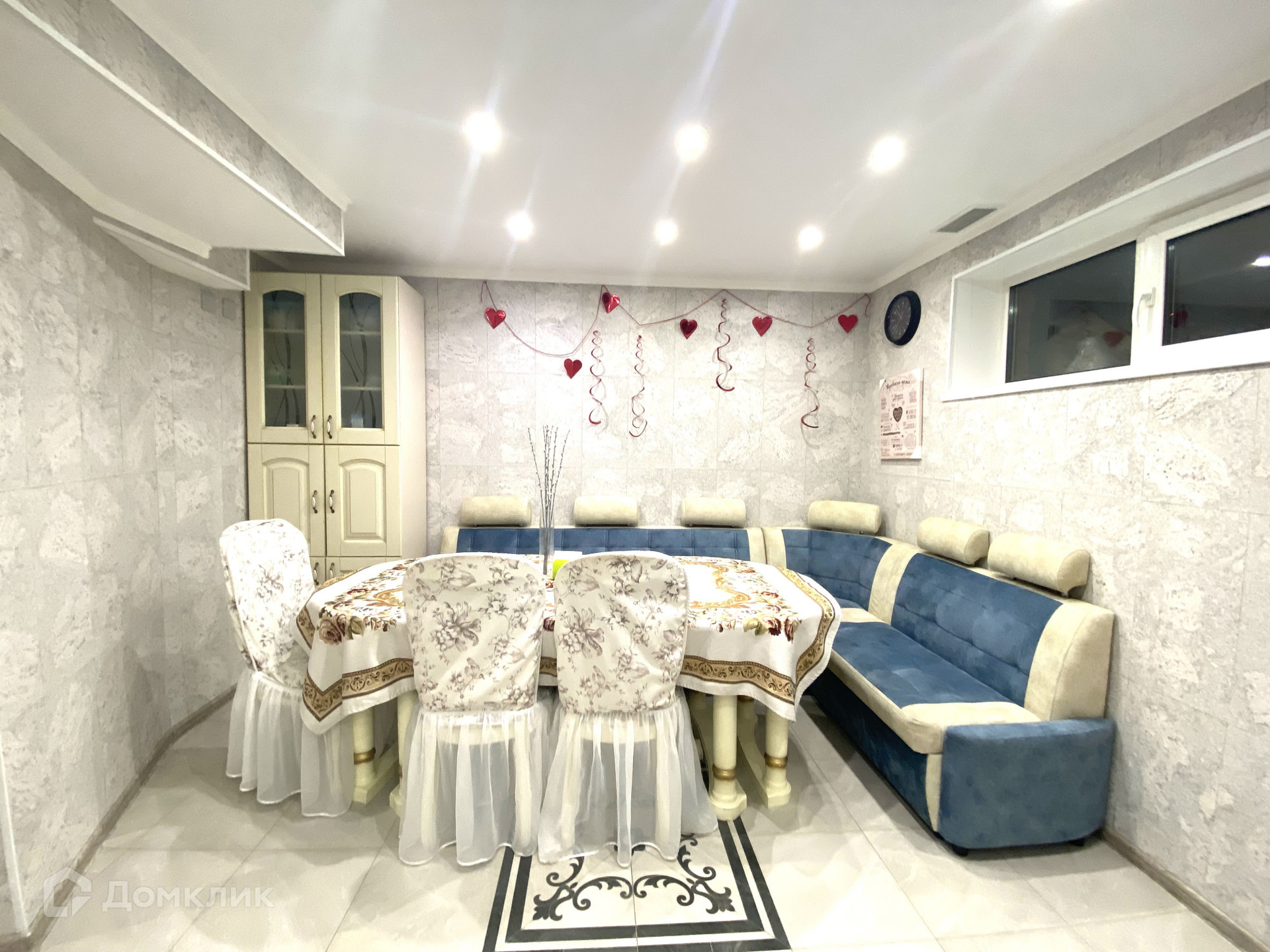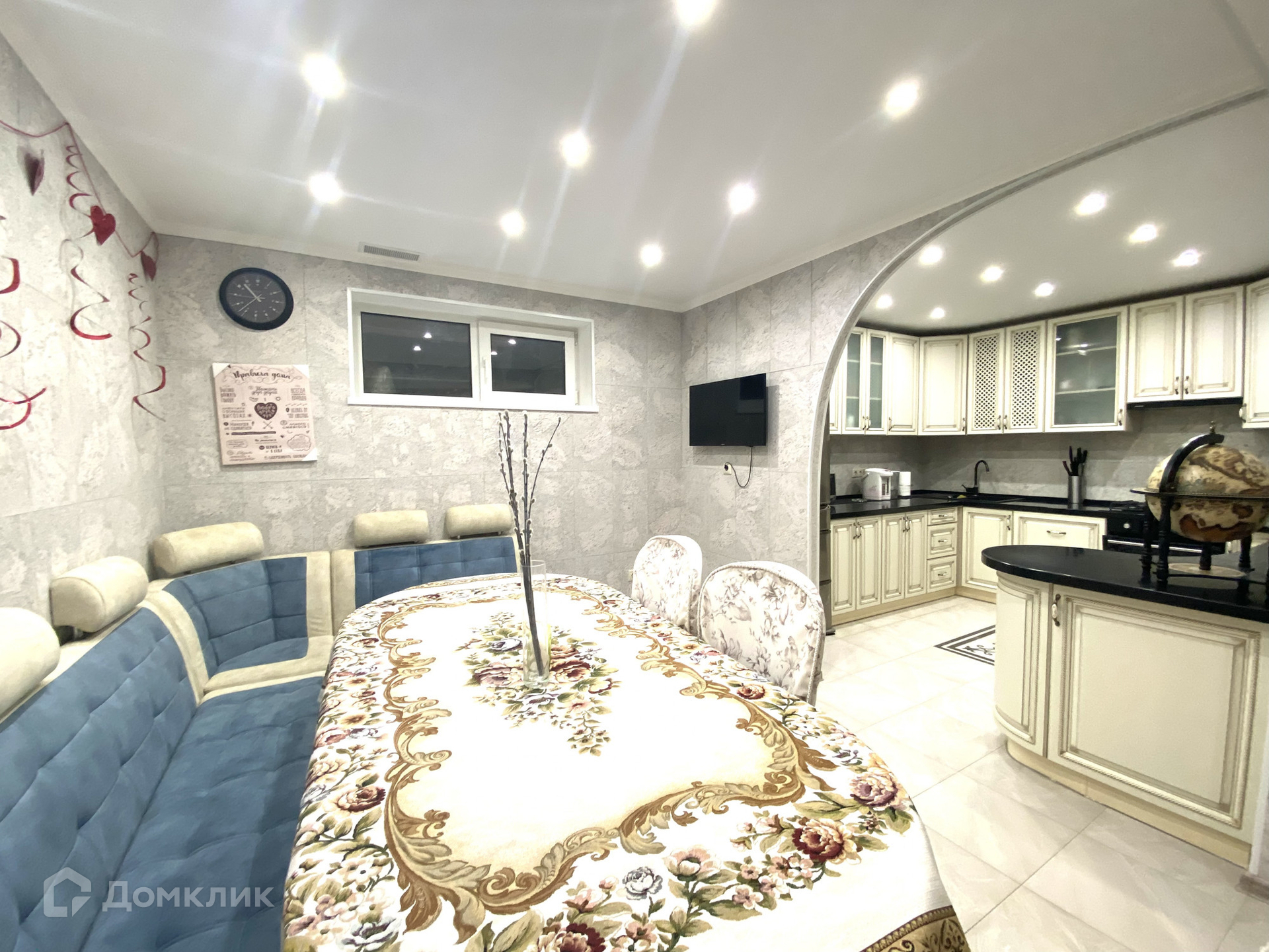 В доме на 1 этаже расположено: прихожая с гардеробными, просторный зал, кабинет, санузел, вместительная кладовая; на 2 этаже: две спальни с выходом на балкон, ванная комната; на 3 этаже: большая комната с санузлом; на цокольном этаже: кухня, переходящая в просторную гостиную (проведены тёплые полы), есть отдельный выход в закрытую беседку, постирочная с бойлерной, кладовая.