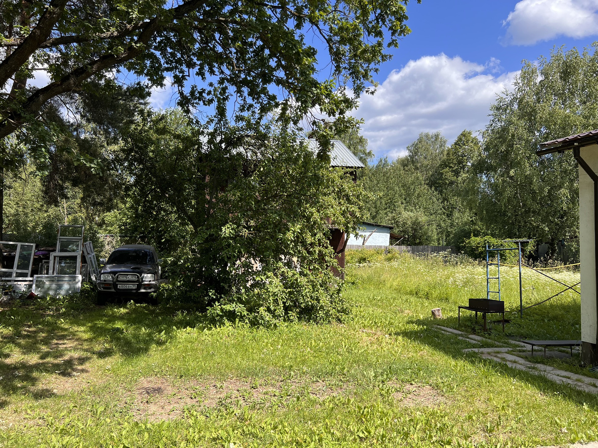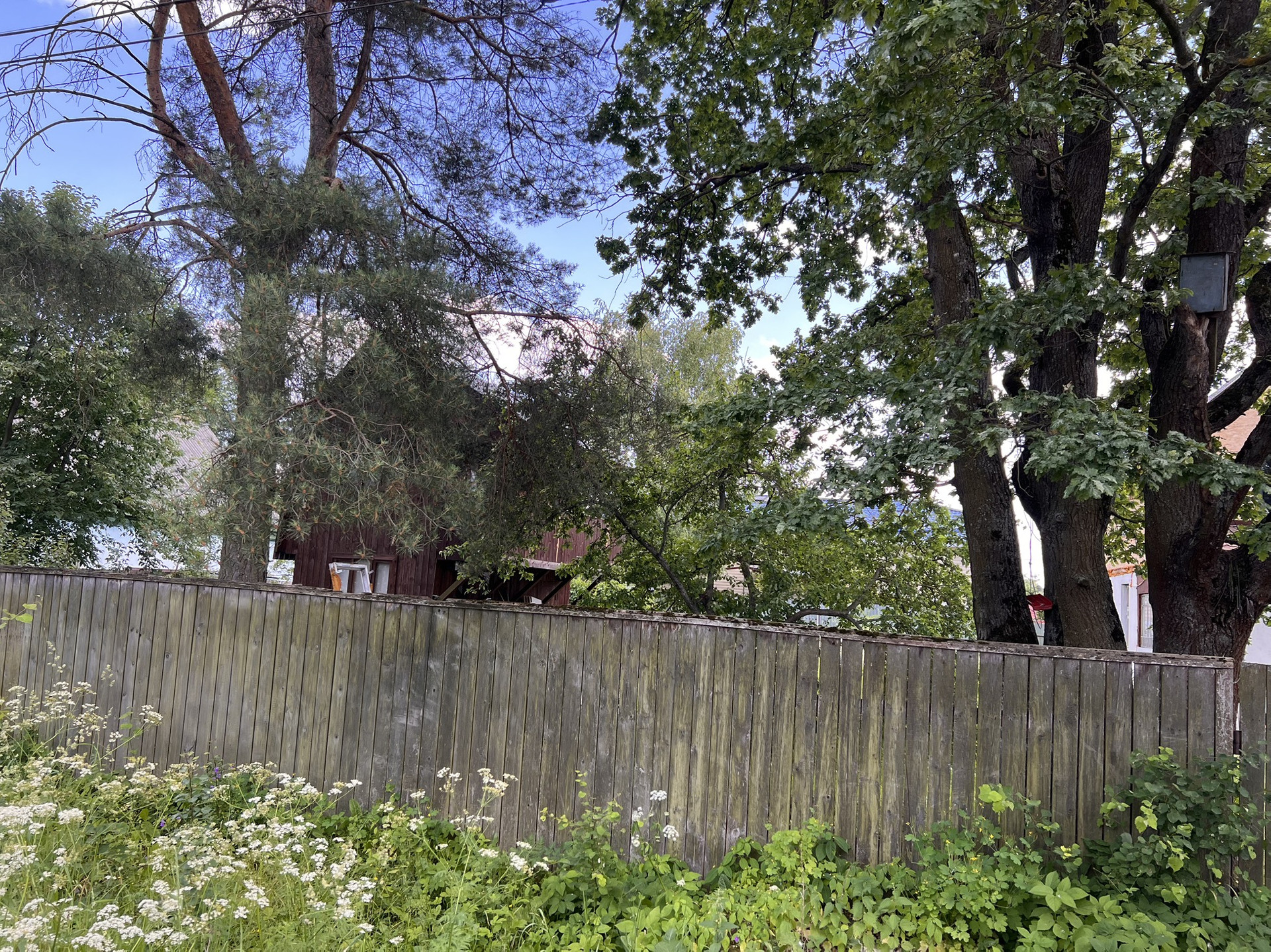 На участке  большой дуб.