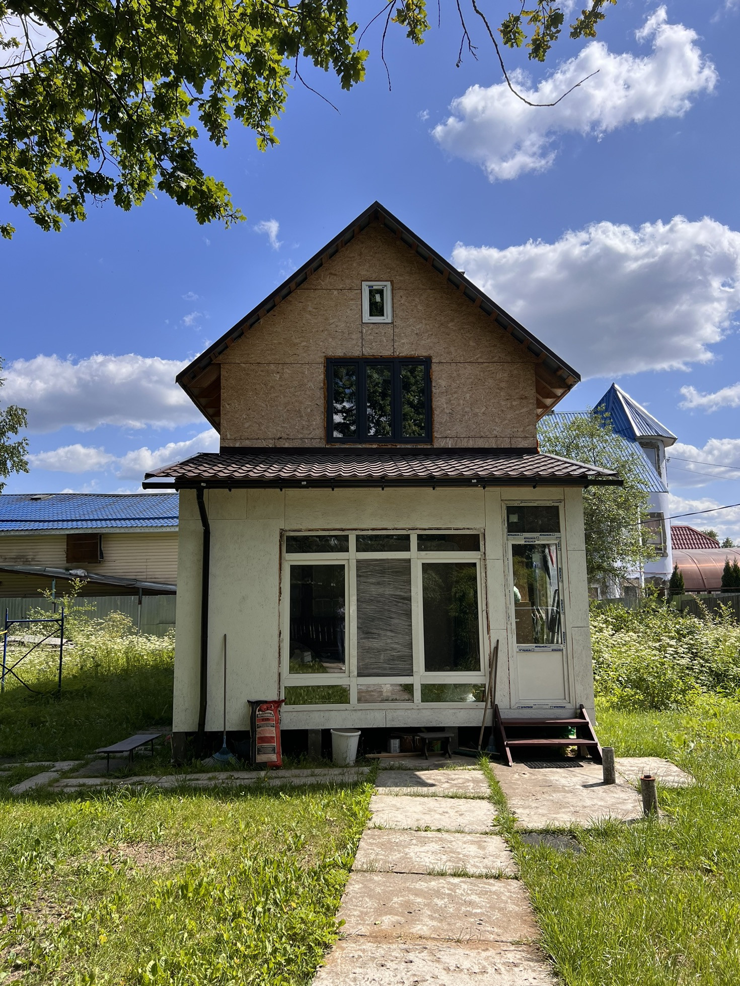 Первый этаж пригоден для зимнего проживание. Возможен вывод отопления на второй этаж. Второй этаж не достроен, только стены, окна и крыша. Крыша металлочерепица . Второй этаж и крыша построены 2 года назад.