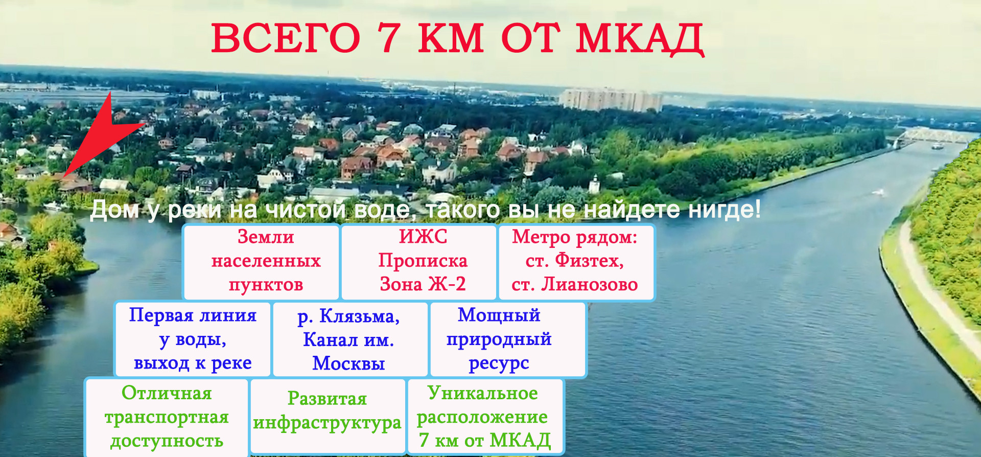 Участок рядом с Москвой. Первая линия у воды. Земли населенных пунктов, ИЖС, прописка МО. Всего 7 км от МКАД. Рядом метро. Редкое предложение. Без агентов и посредников.