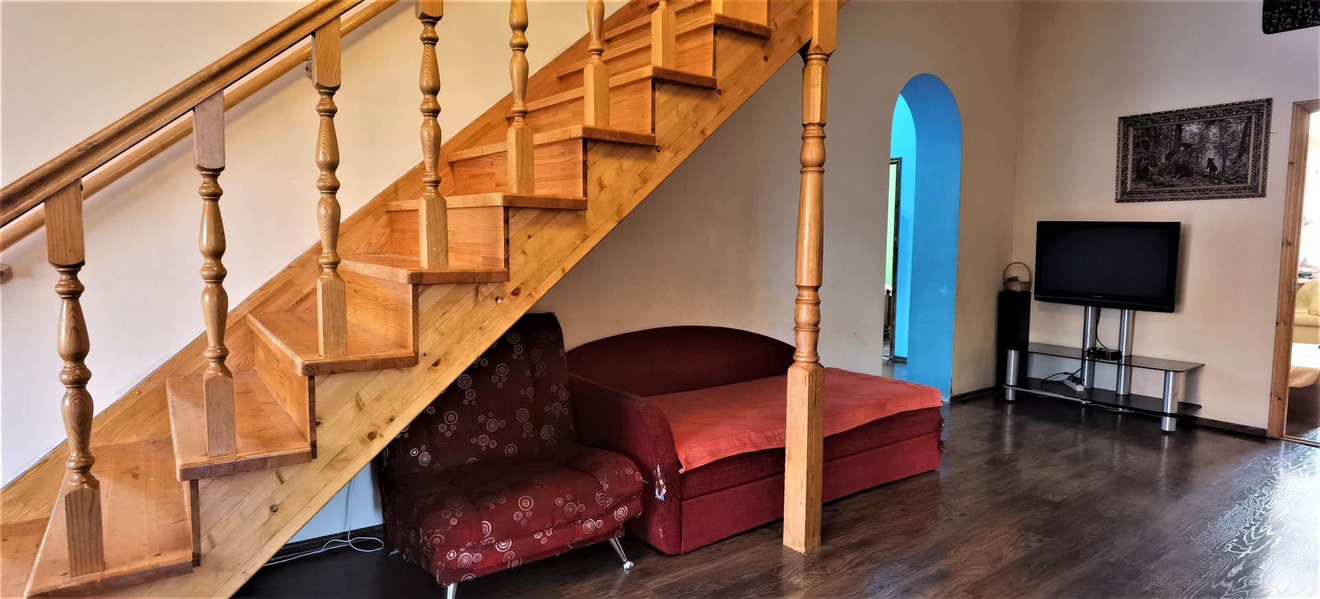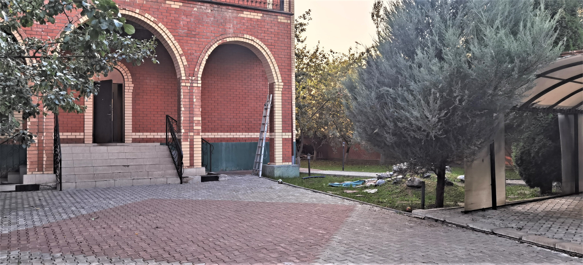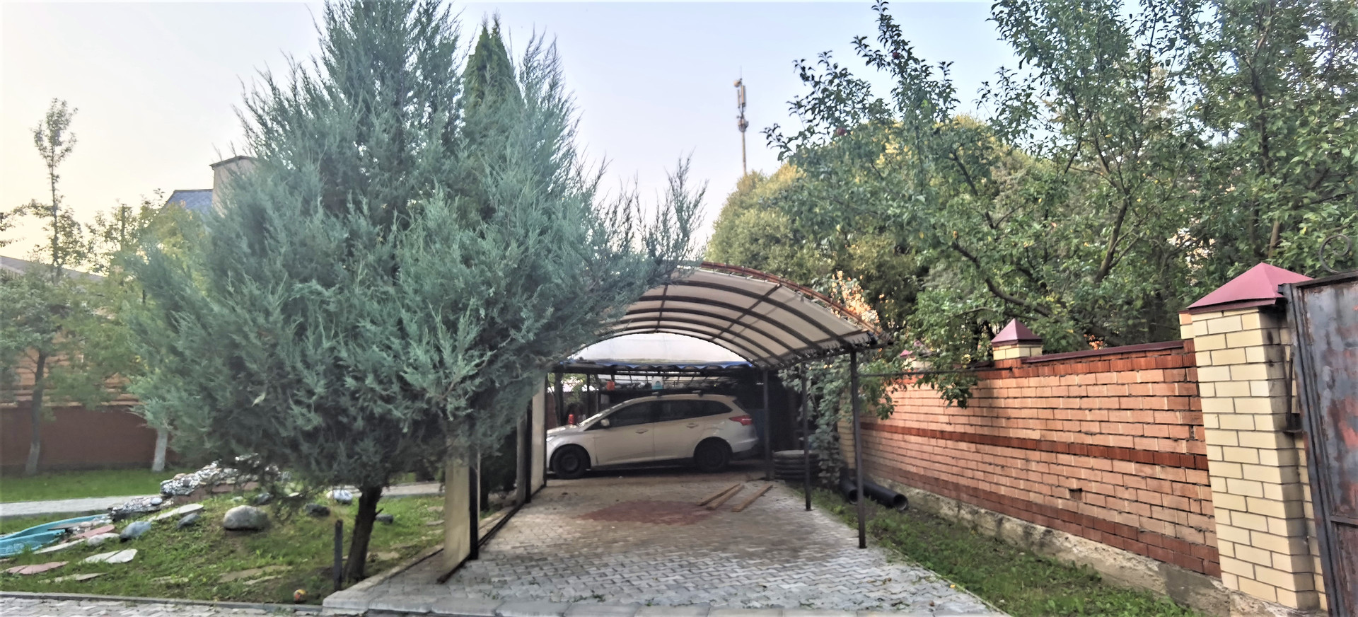 Летняя кухня площадью 50кв м располагается за домом, рядом есть пристройка и гараж площадью 21кв м, перед домом есть навес и зона парковки площадью 50кв м, очень много плодовых деревьев (груши, яблони, сливы), туи и пихты растут на территории участка.
