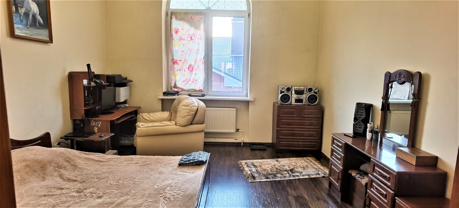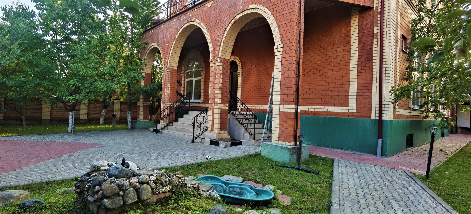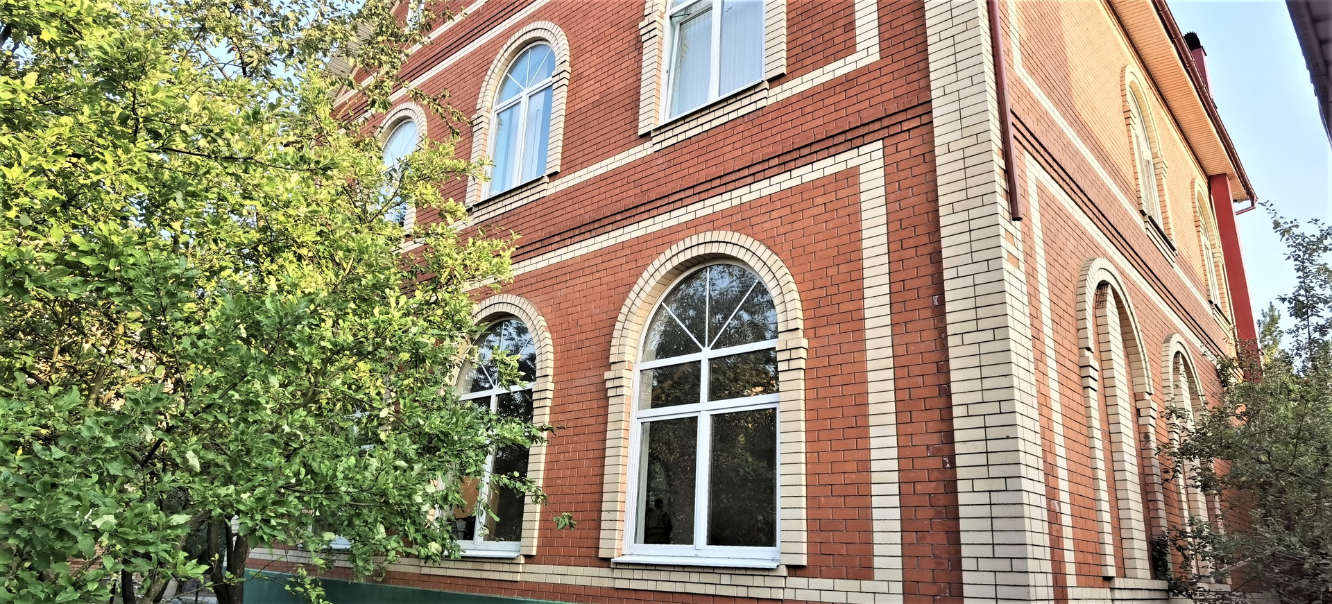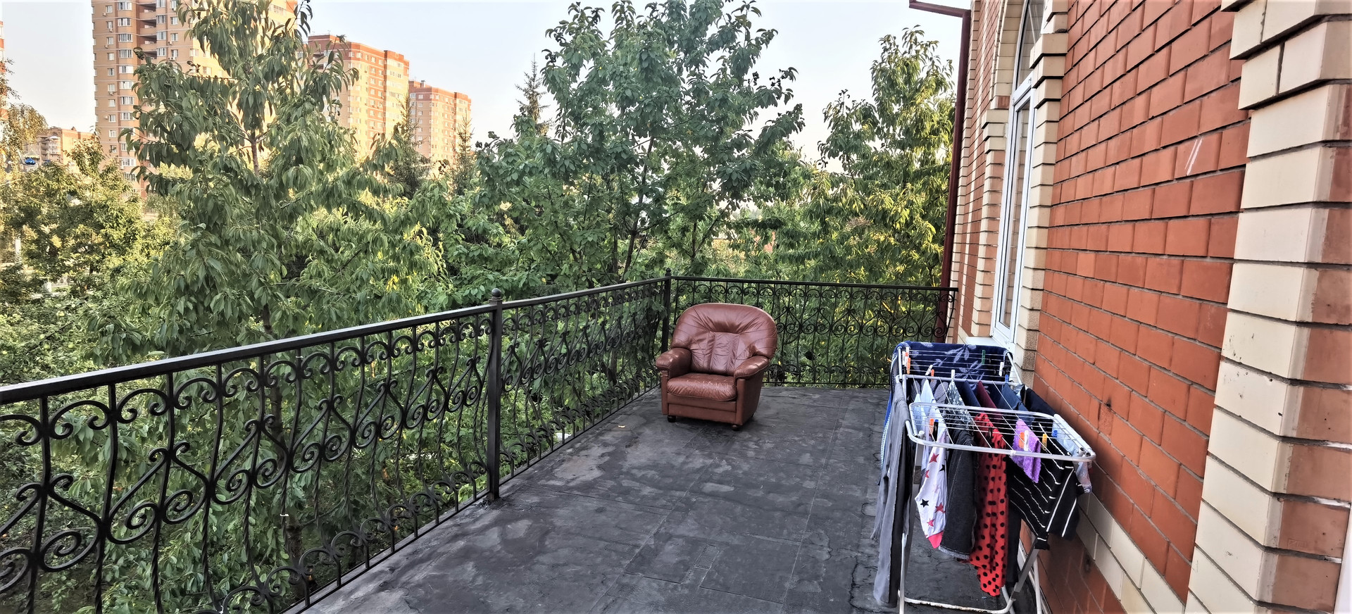 Дом построен по индивидуальному проекту из газобетонного блока, обшитого утеплителем и облицован кирпичом, толщина стен 48см, фундамент монолитный ленточный, очень высокий цокольный этаж площадью 196кв м, высота потолка 3м, под чистовую отделку, 1-й этаж : большая гостиная-зал с колоннами с высотой потолка 4,2м, в котором можно оборудовать и роскошную гостиную для проживания большой семьи и помещение под бизнес и производство, полы первого этажа с отоплением, 2-й и 3-й этажи имеют по 5-6 комнат: холлы, спальные и детские комнаты, сан.узелы, построчные, кладовые, зоны отдыха и занятия спортом, гардеробные комнаты, между этажами лестница из деревянного массива. Большая открытая терраса с прекрасным видом на город. Крыша - металлочерепица.