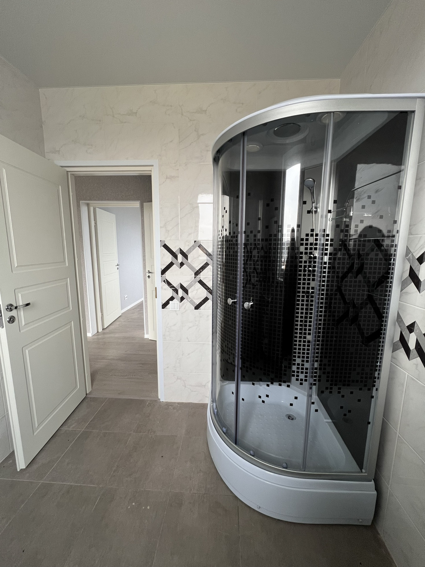 - Сан.узел оборудованный сан.техникой, душевой кабиной, в нем также установлено большое окно.