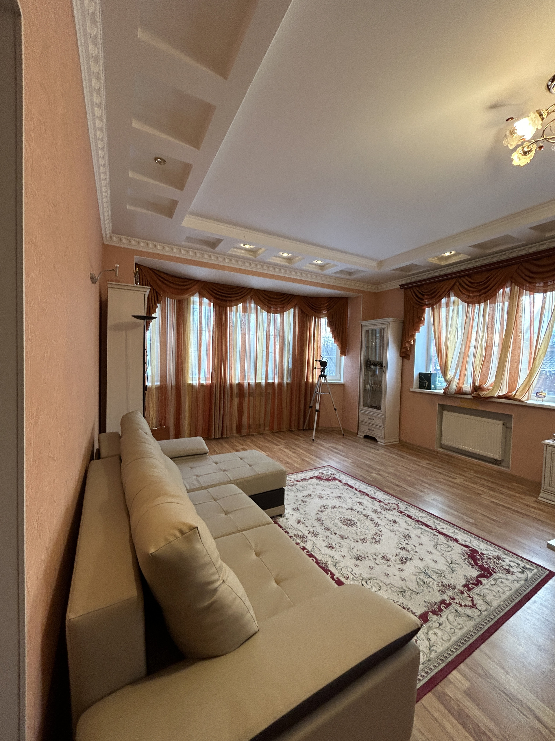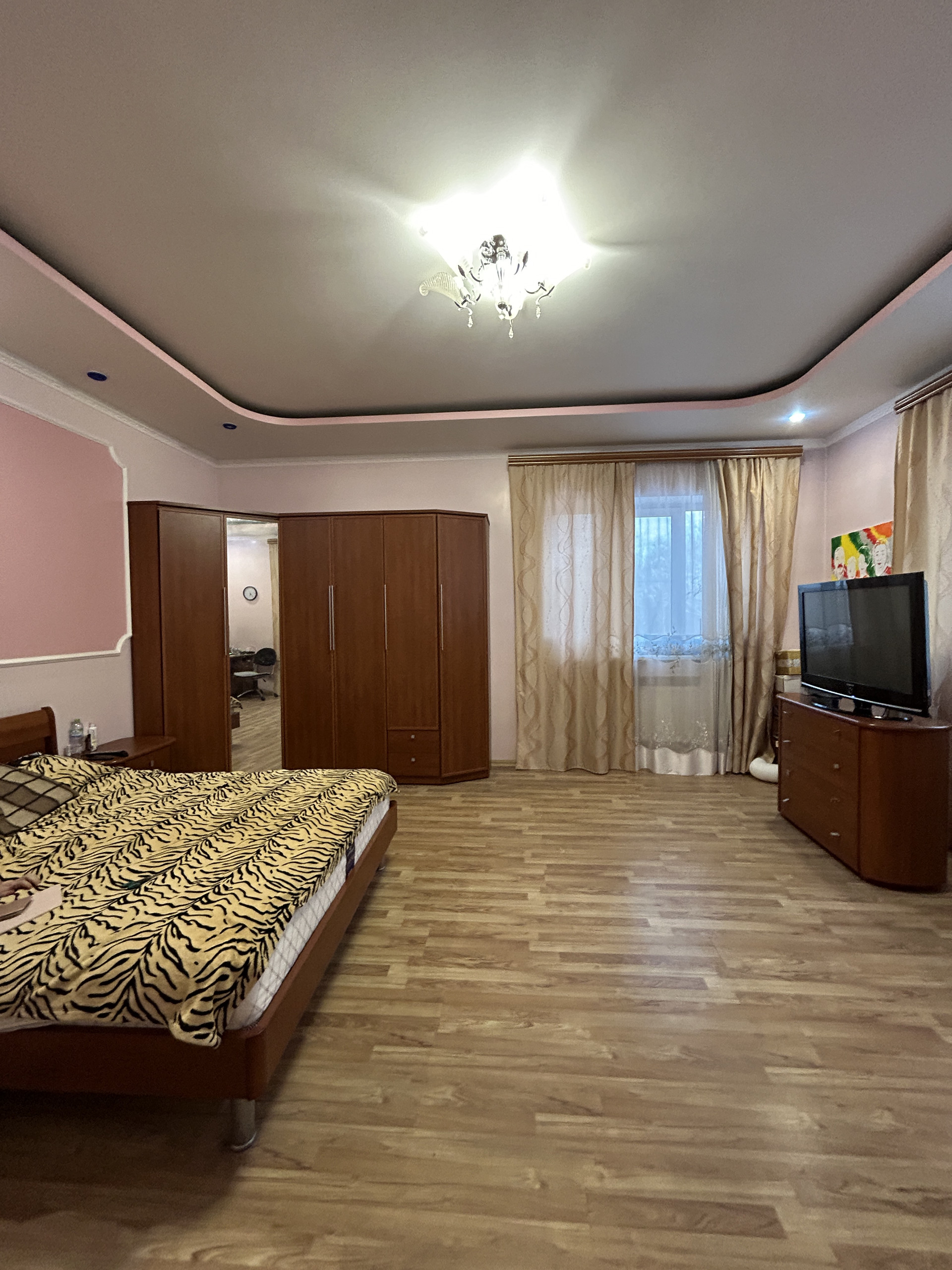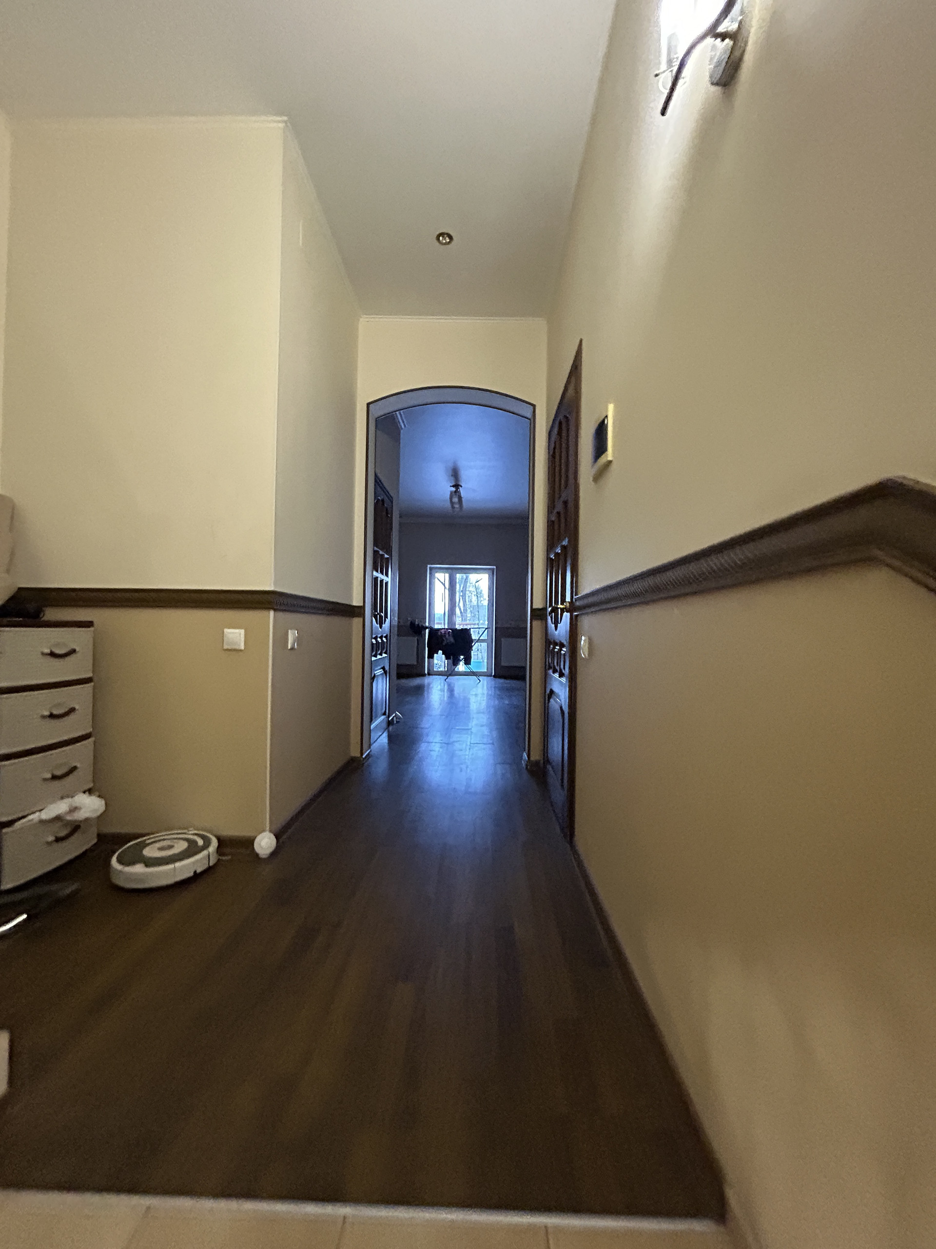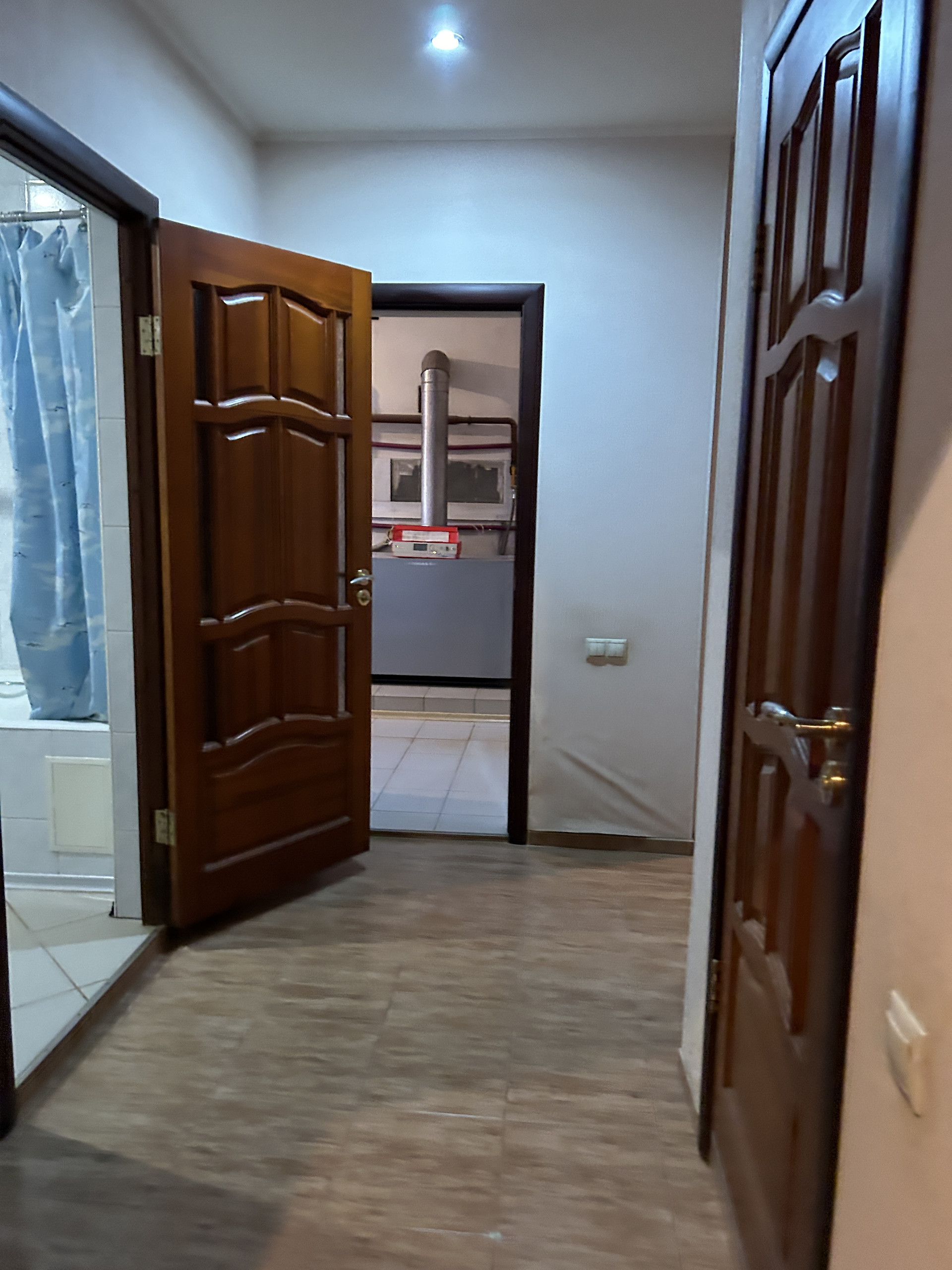 Потолок по всему дому- гипс, пол-плитка, ламинат. Входная дверь сделана на заказ с увеличенным проемом по ширине. Остается вся мебель кроме гостиной. Холодильник и камин забирают.