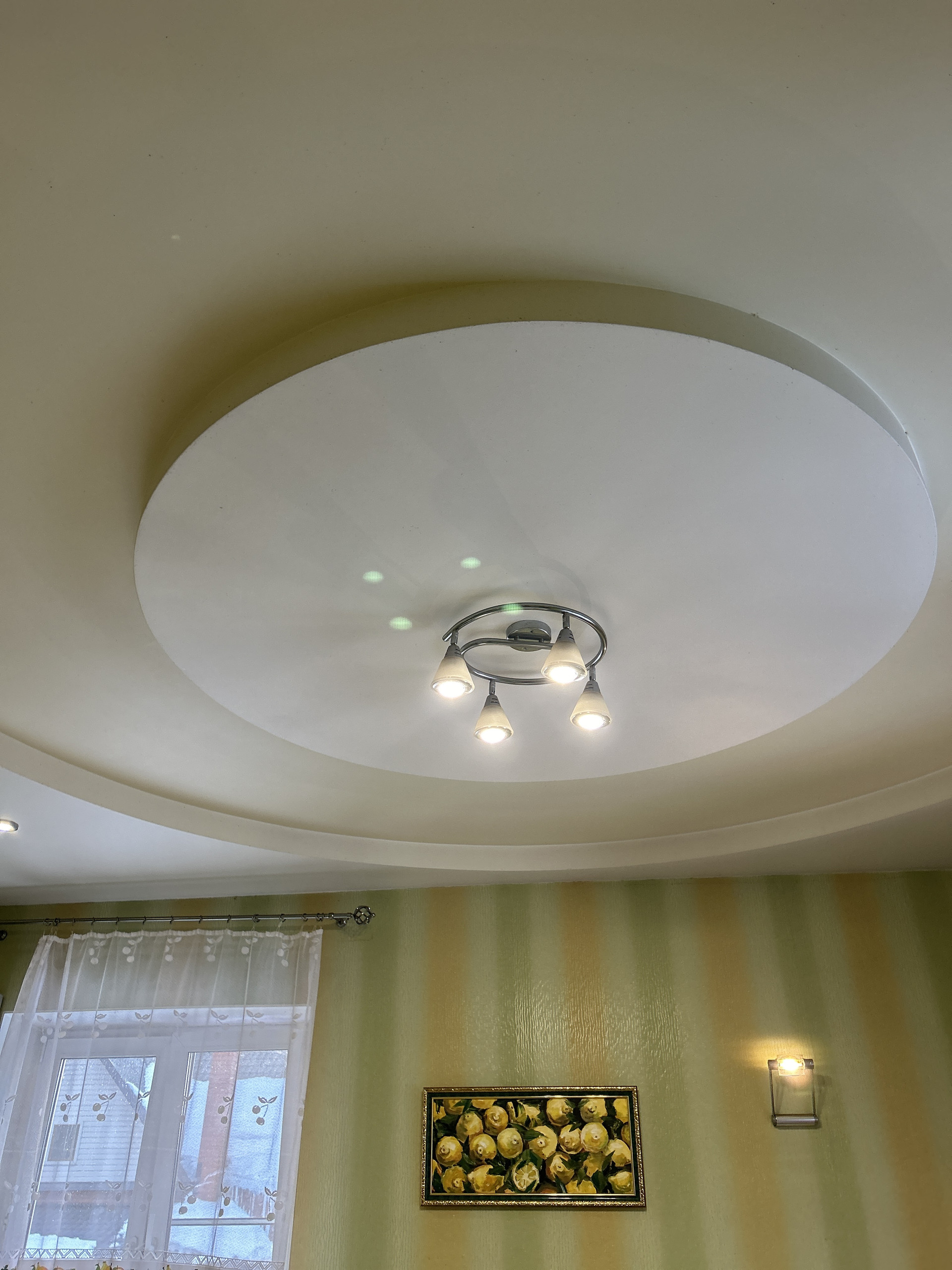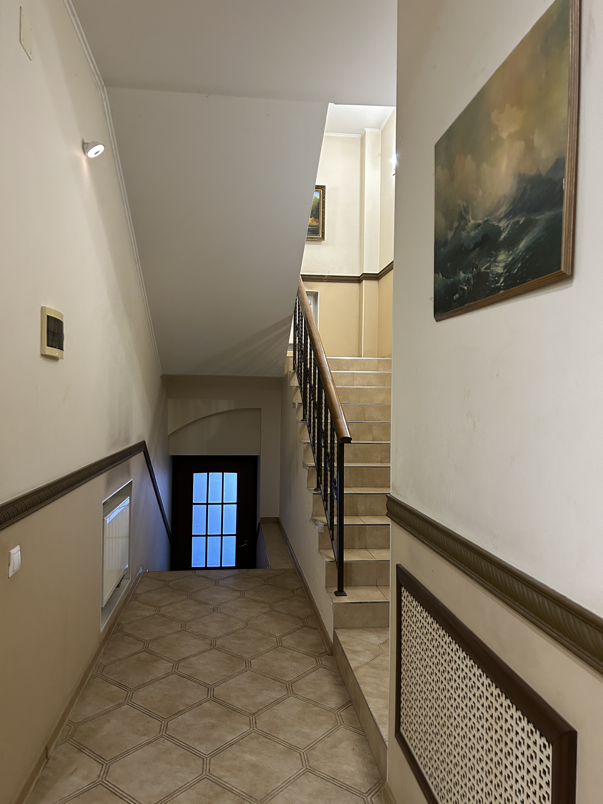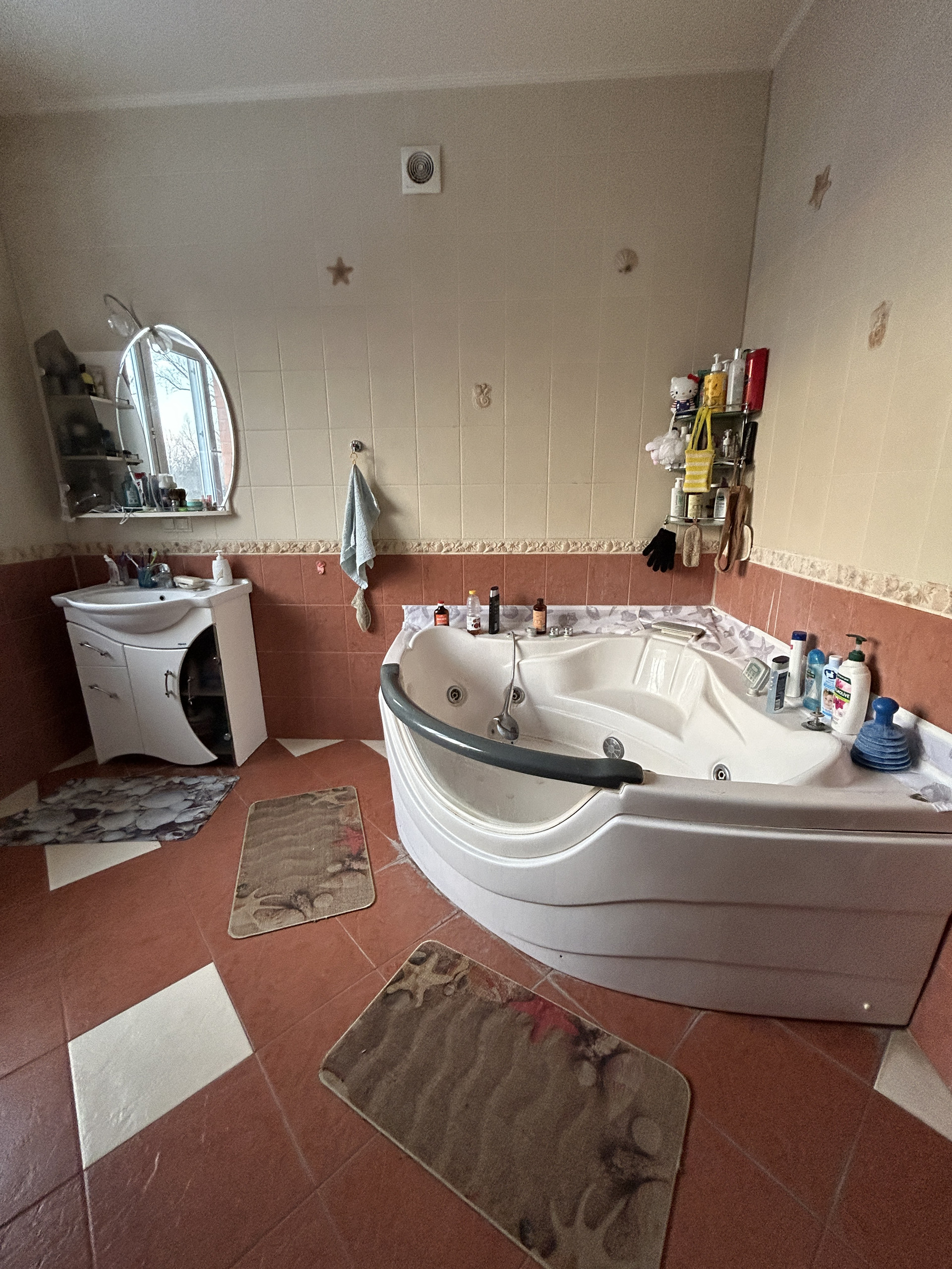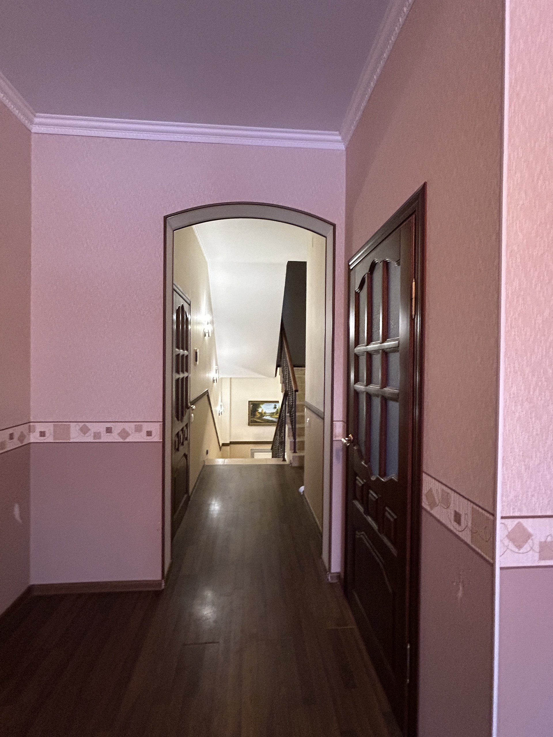 Потолок по всему дому- гипс, пол-плитка, ламинат. Входная дверь сделана на заказ с увеличенным проемом по ширине. Остается вся мебель кроме гостиной. Холодильник и камин забирают.