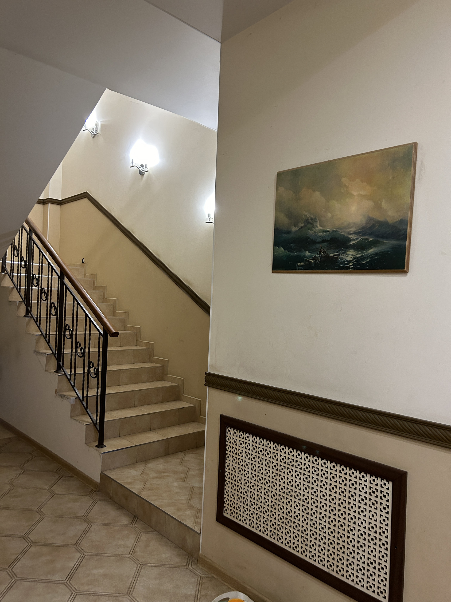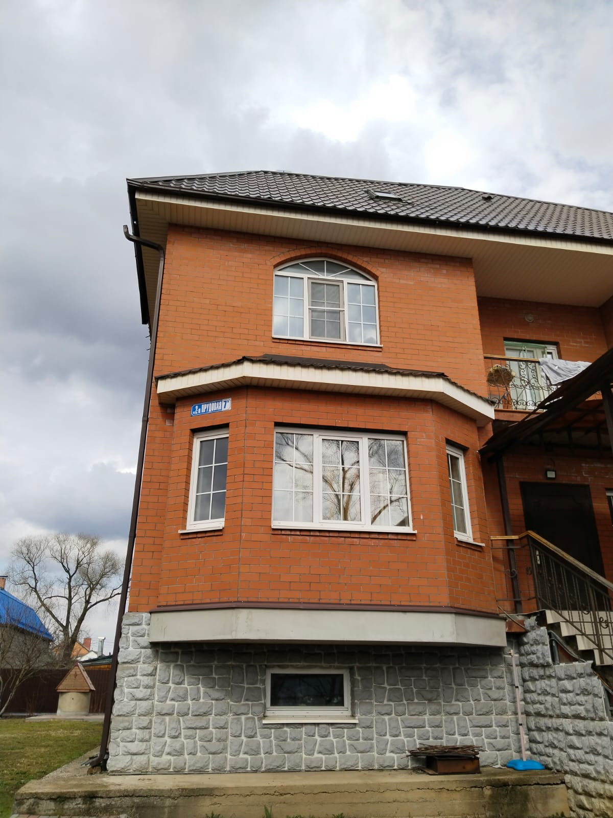 Дом построен из пеноблоков с воздушной прослойкой, утеплитель, кирпич 1.5, фундамент-блоки, монолитный пояс, плиты перекрытия, крыша- металлочерепица, балконы и лестницы-ковка.