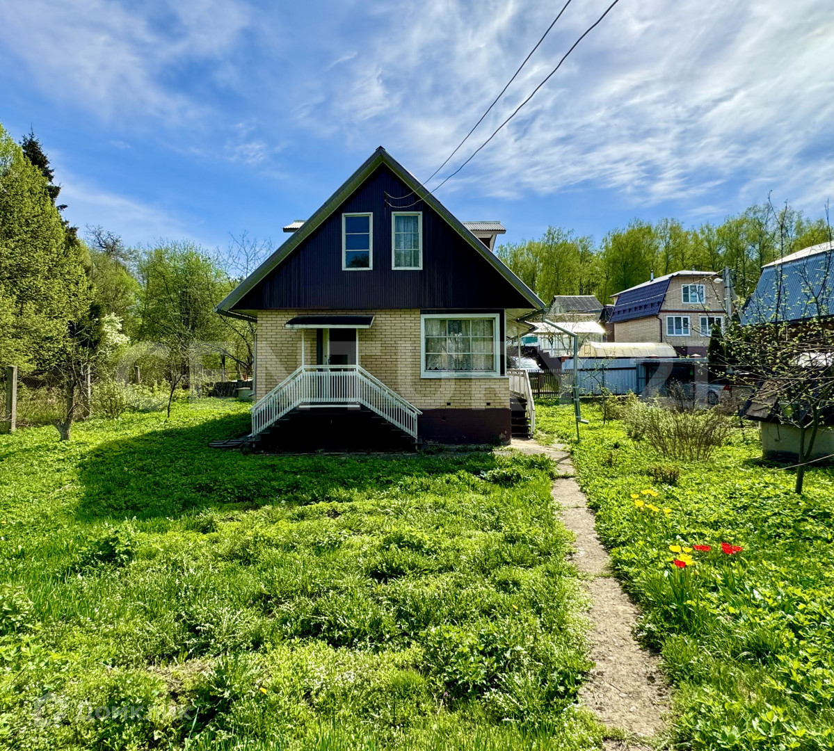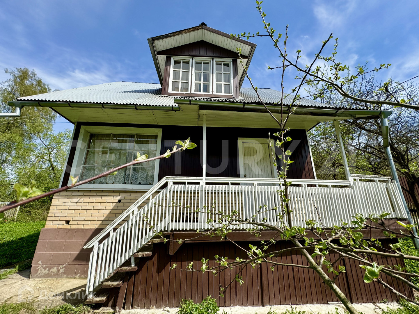 обшит кирпичом и металлическим сайдингом,
