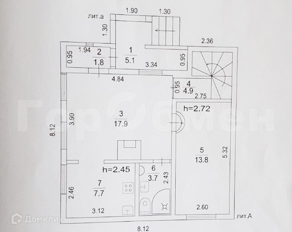 Планировка включает 4 спальни, гостиную с камином, кабинет, кухню, кладовку.