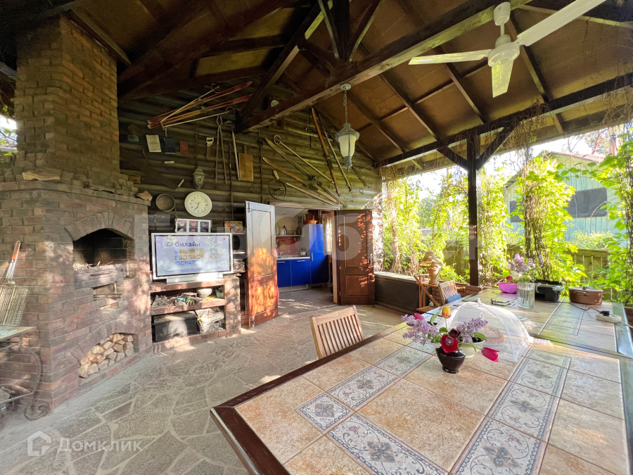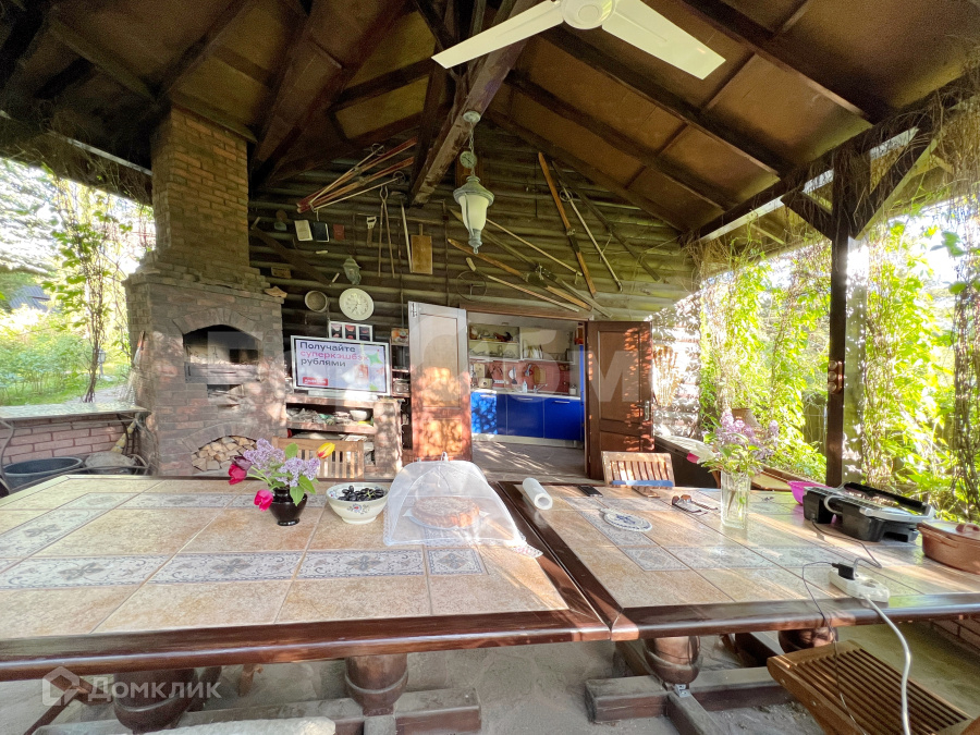 На участке расположены крытая летняя кухня с итальянским гарнитуром с бытовой техникой, баня с мастерской, навес на 4 автомобиля и теплица. На участке вымощены дорожки, проведено уличное освещение. Есть въездная группа с распашными воротами. Участок на улице без сквозного проезда.