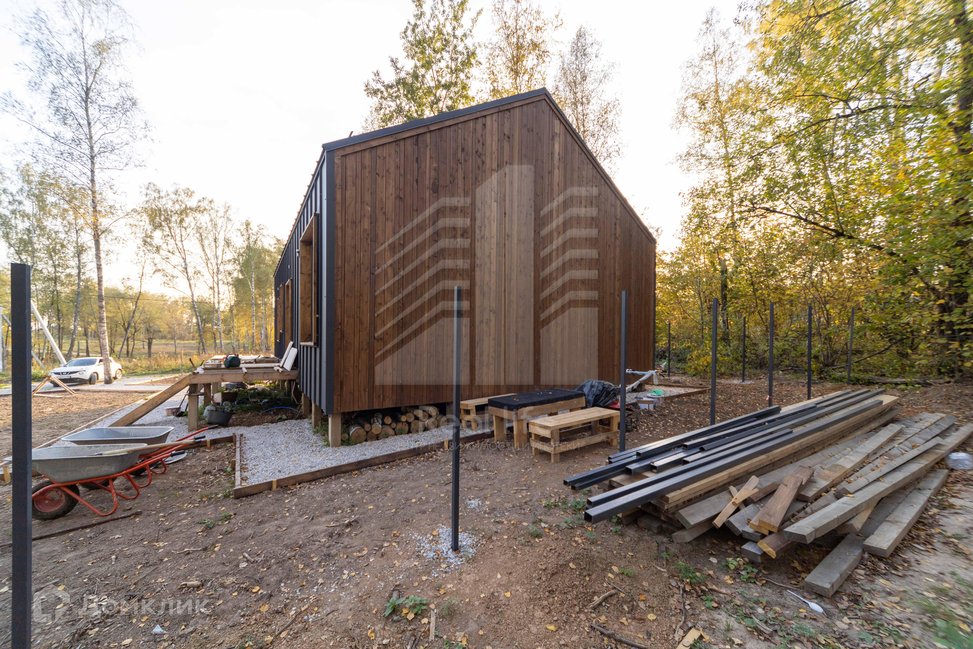Наружная комбинированная отделка деревом и Кликфальцем