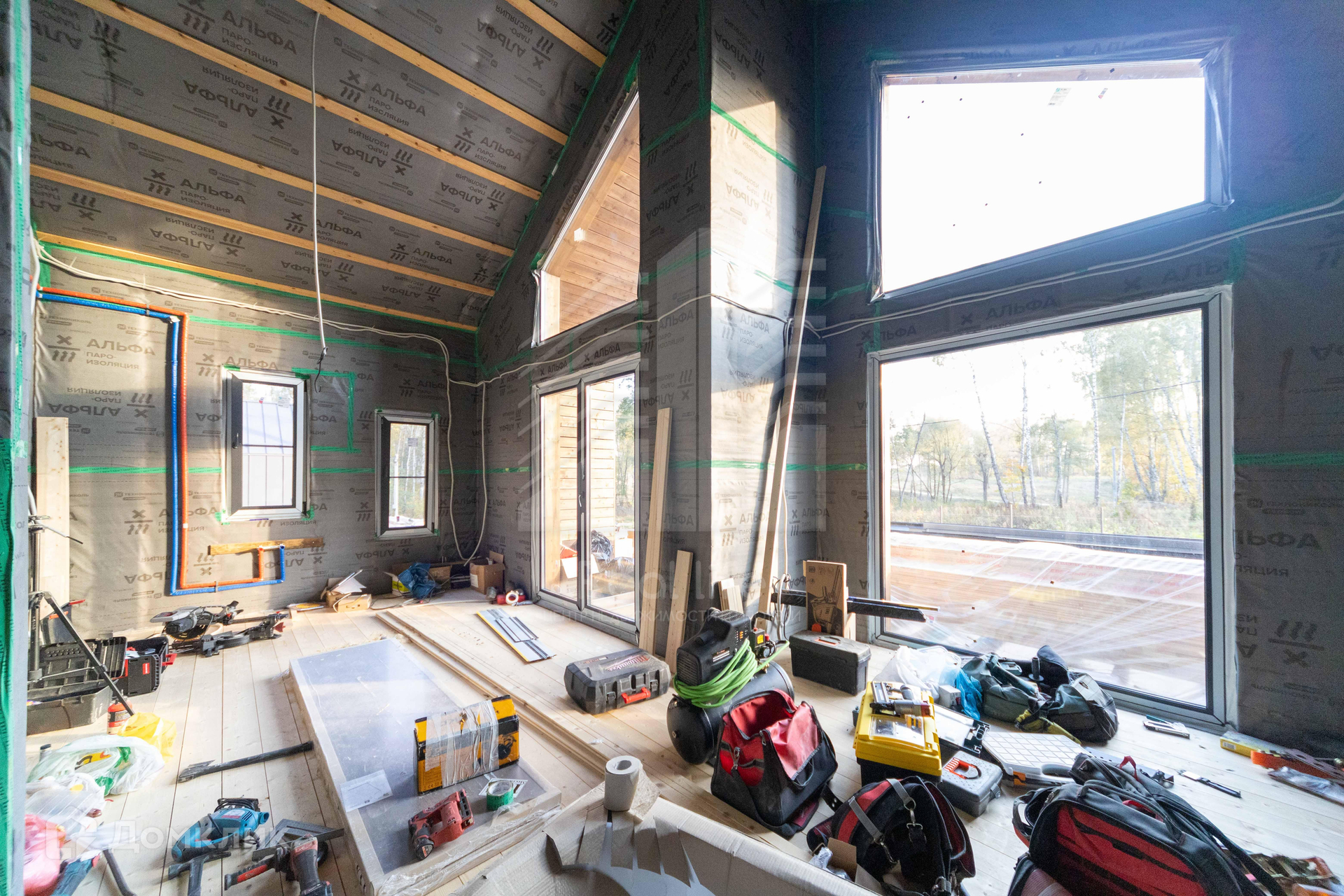 В доме панорамные окна ,