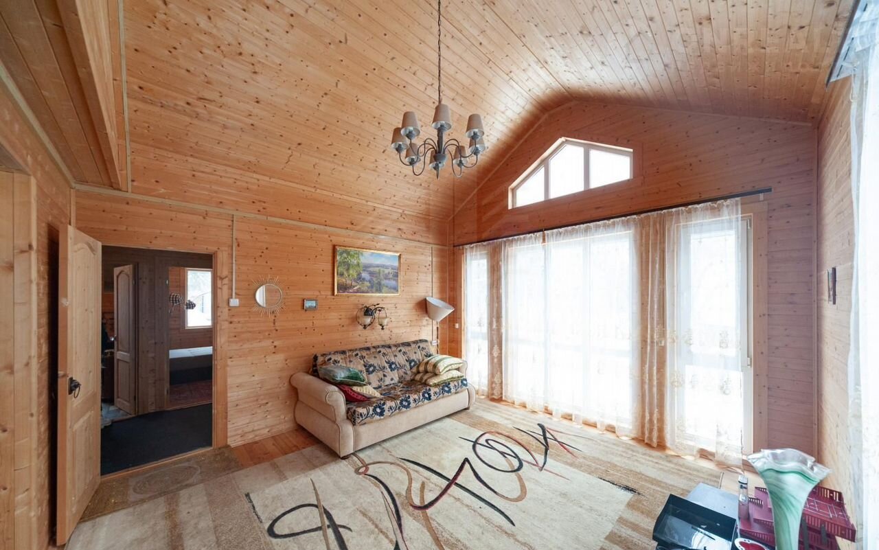 Дом строила компания «Терем». Дом утеплен, подходит для круглогодичного проживания. Общая площадь 63 кв.м, 2 комнаты: 10 и 9 м.кв., кухня 10 кв.м, гостиная 18 кв.м.