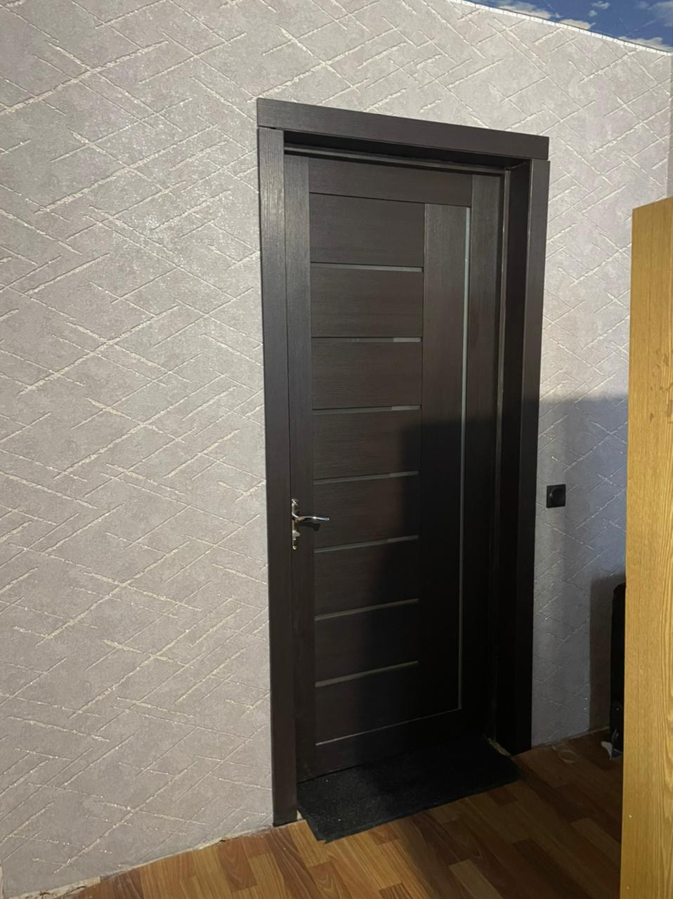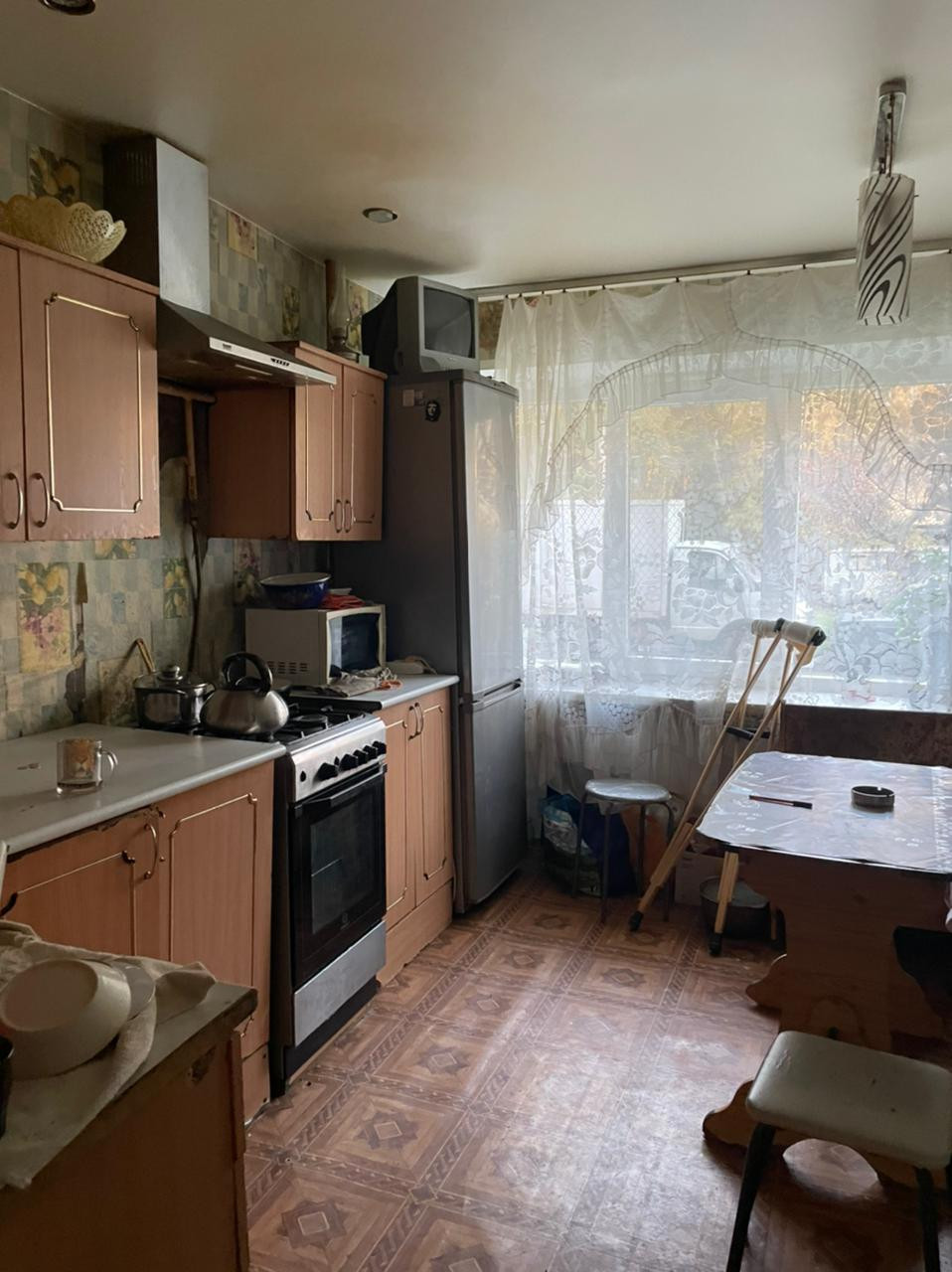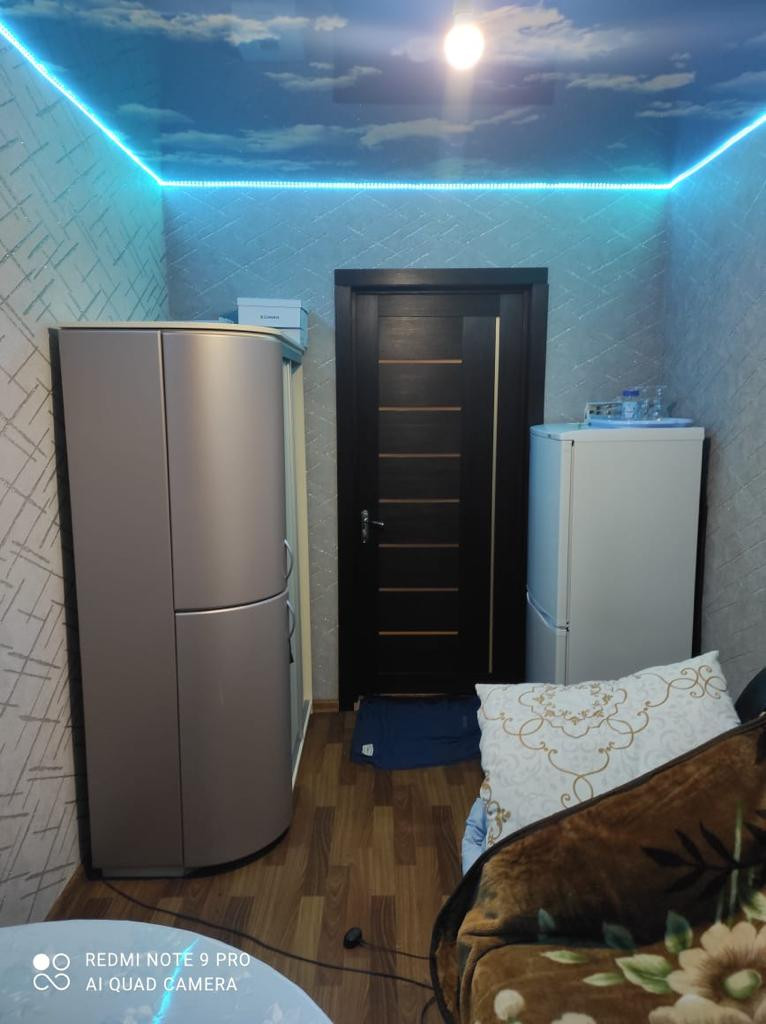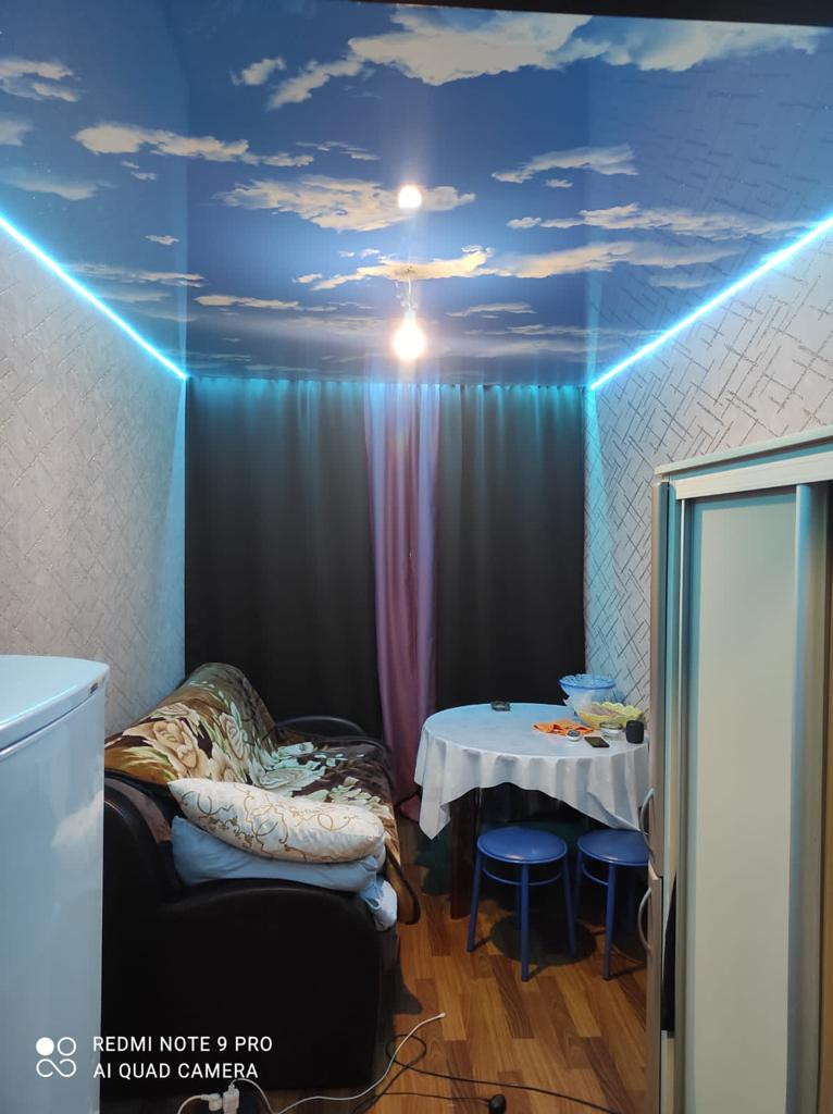 В комнате сделан ремонт, стеклопакет, натяжной потолок, на полу линолеум.