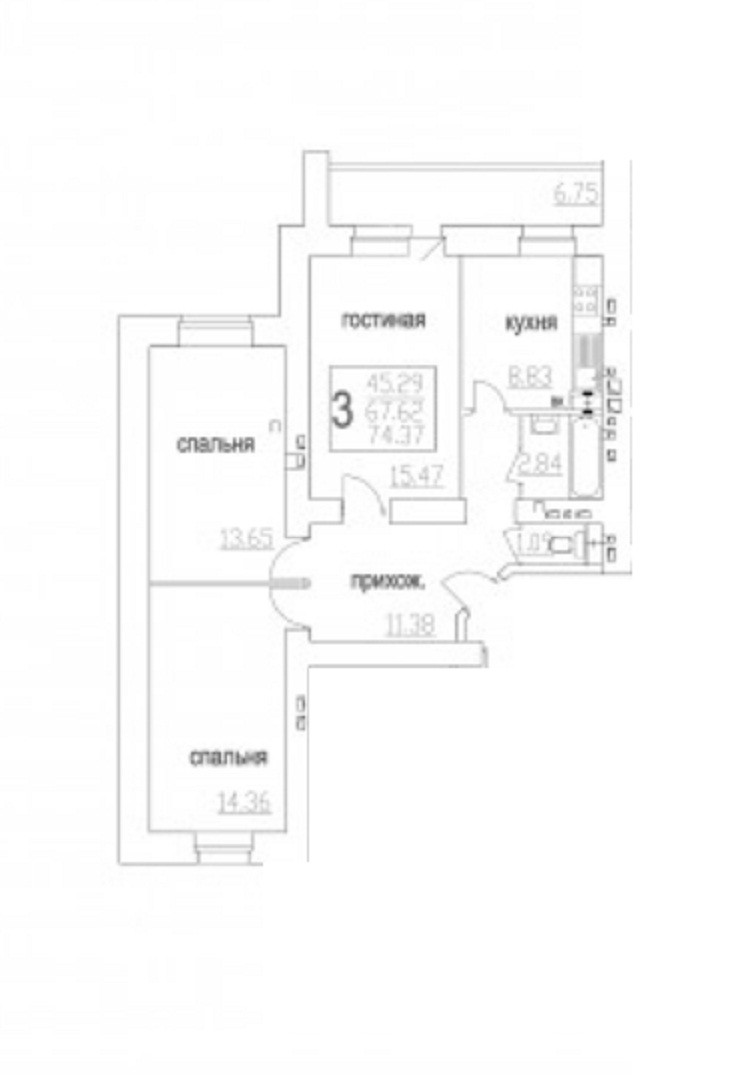 Общая площадь 74 м2