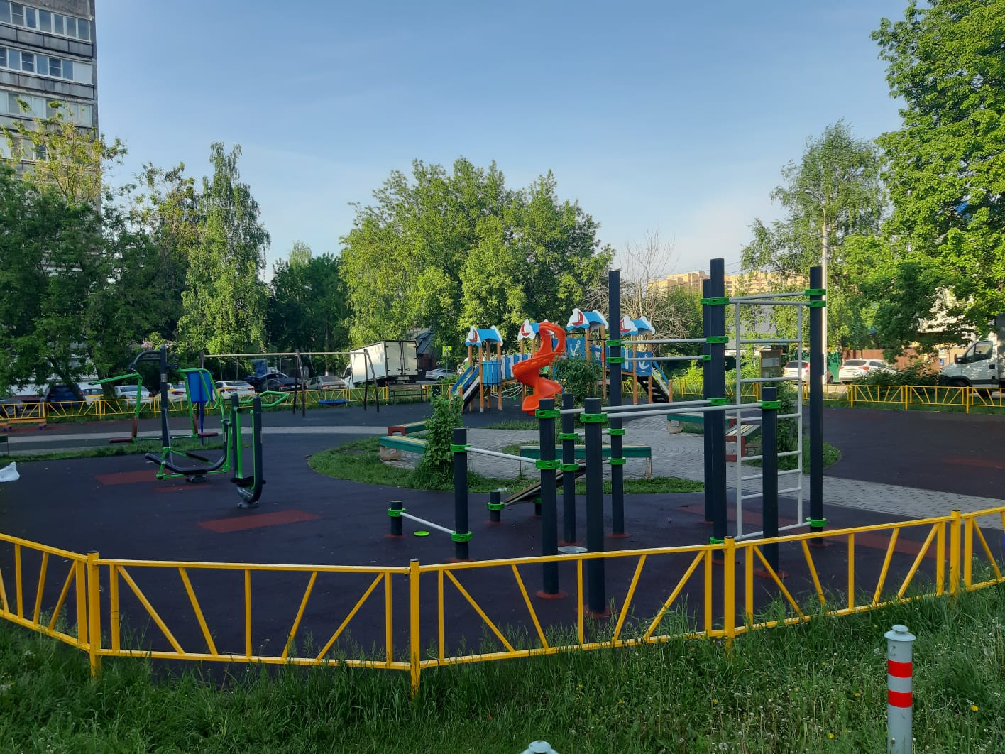 На этаже всего 3 квартиры, хорошие соседи, просторный подъезд всегда чистый, ведется видеонаблюдение. Парковка во дворе, большая и современная детская площадка, а также спортивные тренажеры. В доме есть ряд магазинов, стоматология, салон-парикмахерская.