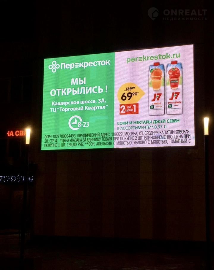 Продам рекламный видеоэкран 37 м2 (768 * 480 см, P10) с разрешительной документацией. Каширское шоссе , центральный перекресток. Окупаемость от 19 месяцев. Возможна продажа частями от 2млн. Собственник.