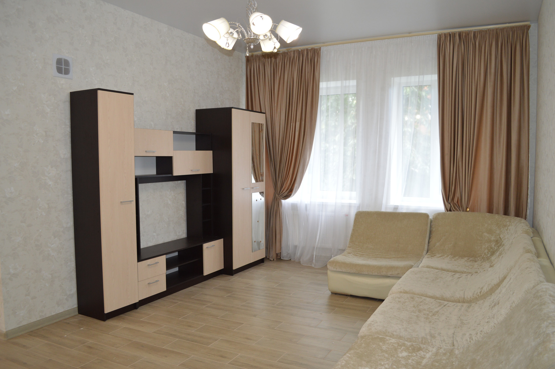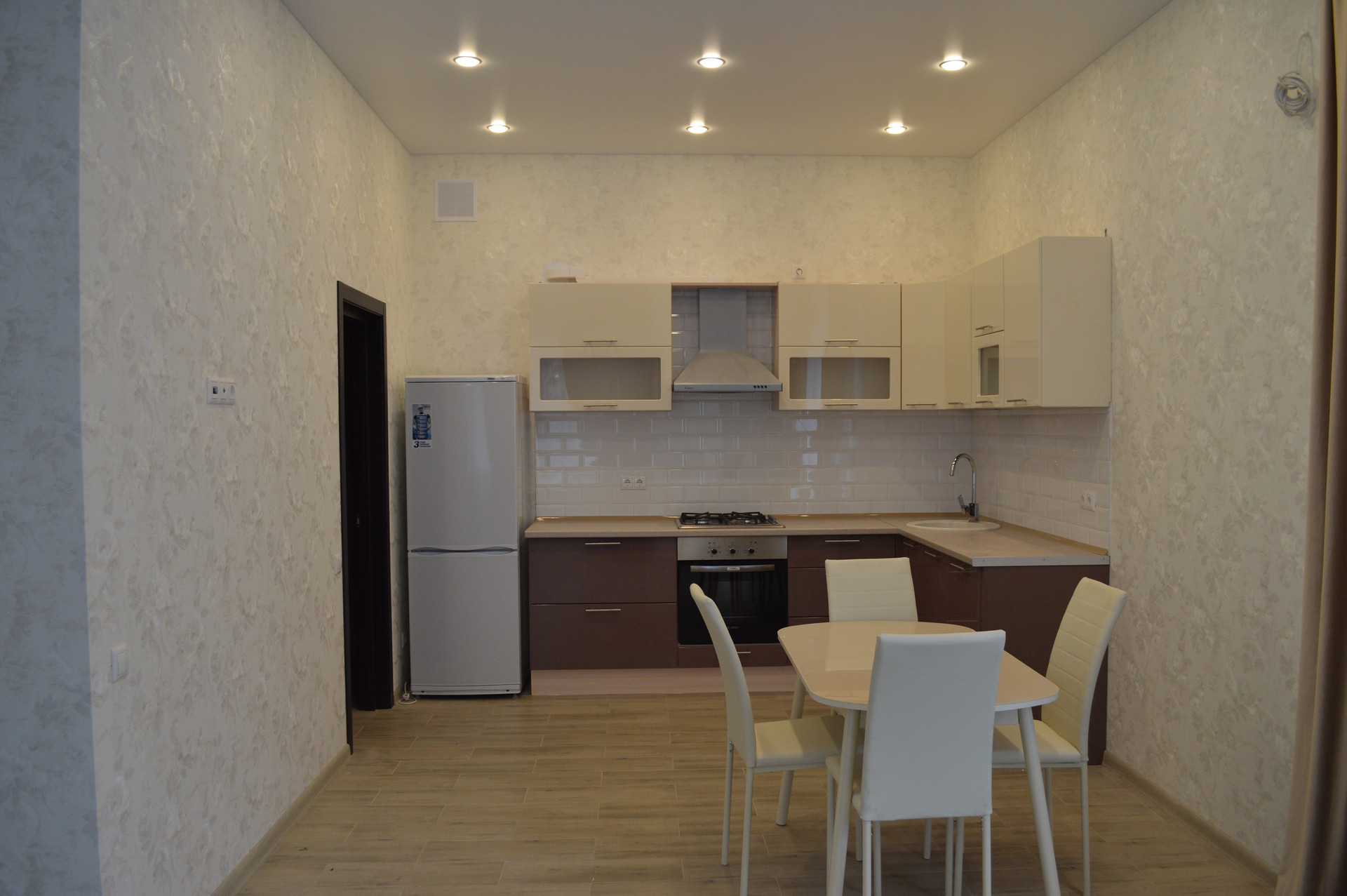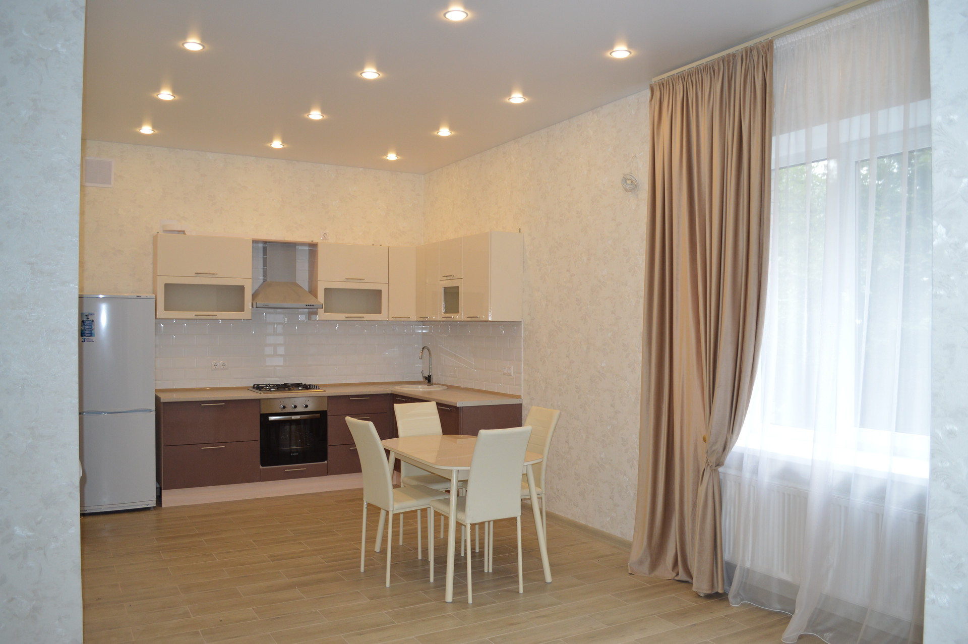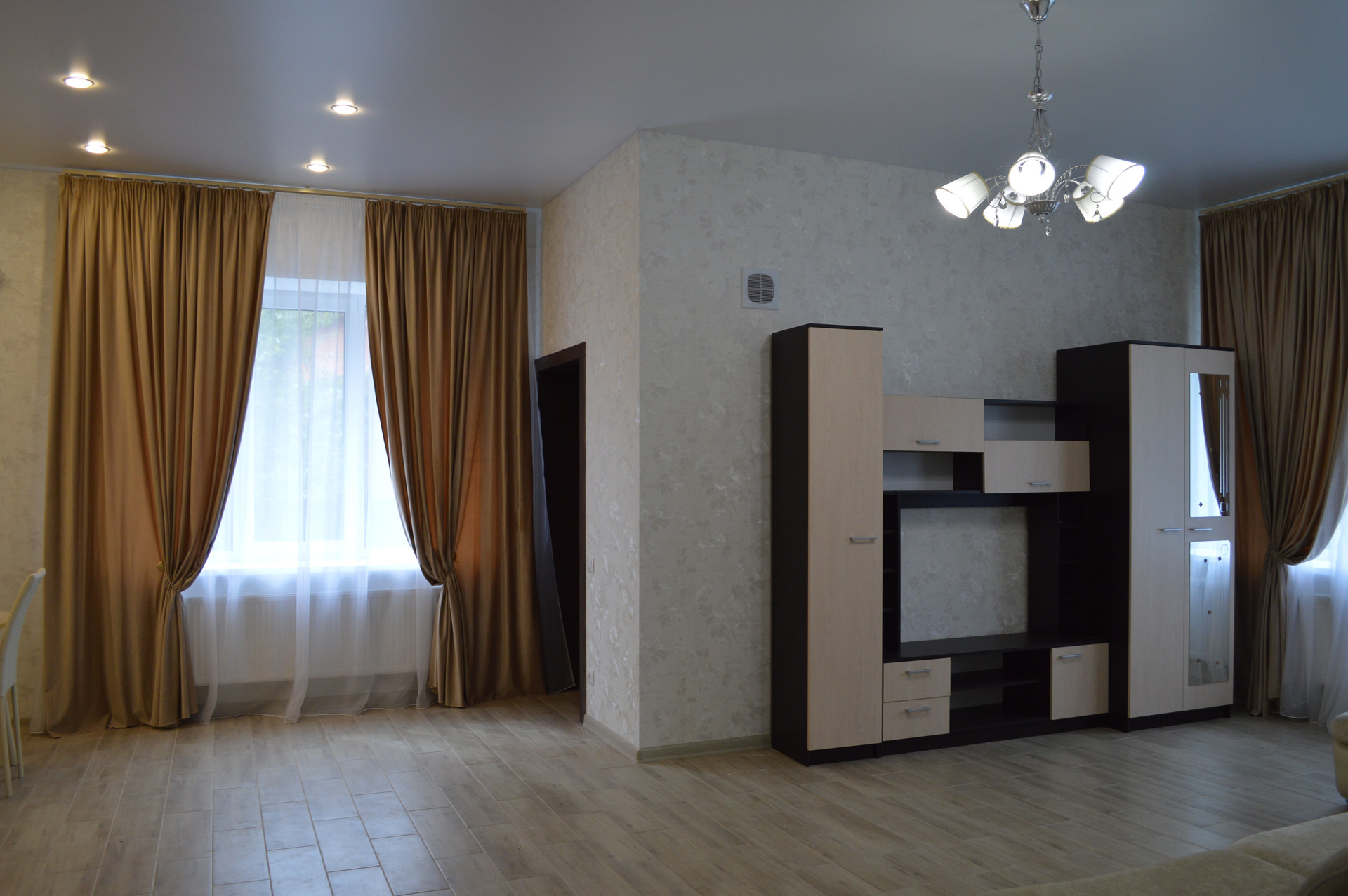 1 этаж: кухня, гостиная (теплый пол), гардеробная, спальня, санузел, подсобное помещение.