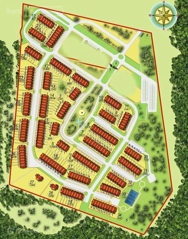 Весь коттеджный поселок выполнен в английском стиле, въезд через шлагбаум по пропускной системе.
