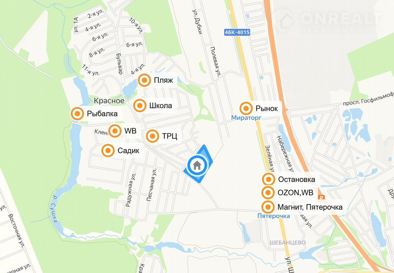 Здесь же магазины Пятерочка, Магнит, пункты выдачи оzоn, wb, яндекс, не большой рынок. Рядом протекает речка "Сушка" есть платная рыбалка. Строится муниципальный детский садик в соседнем поселке.