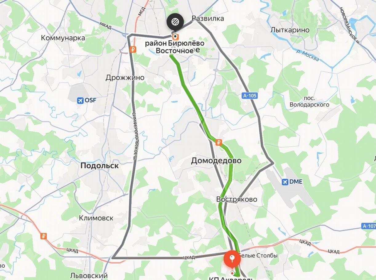 Автобусная остановка в 15 минутах пешком, большое количество маршрутов, добраться можно до метро Домодедовская, до города Домодедово, до МЦД Подольск.