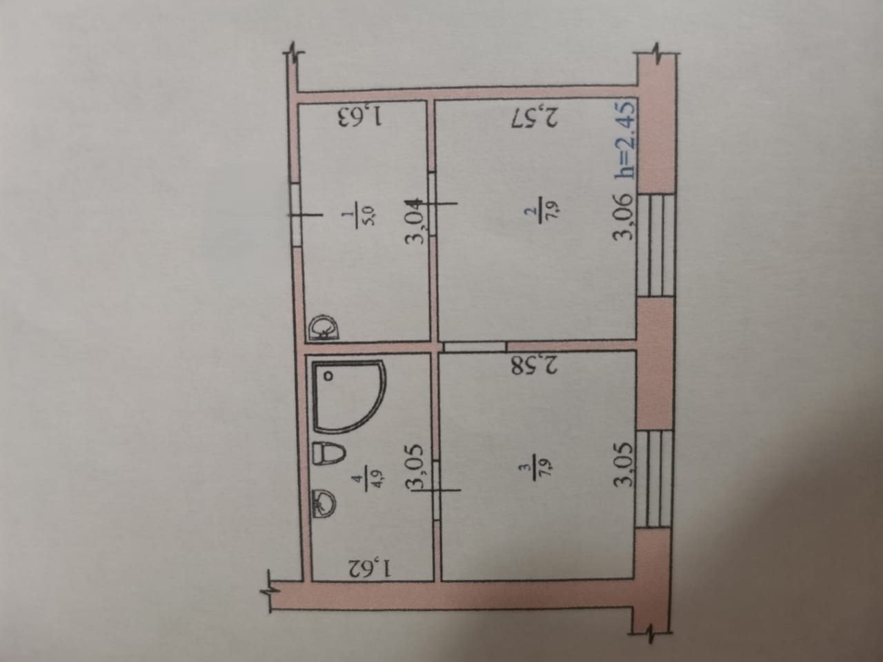 Северная сторона, не угловая, двух камерные м/п окна, стальная дверь (торэкс), под ремонт.