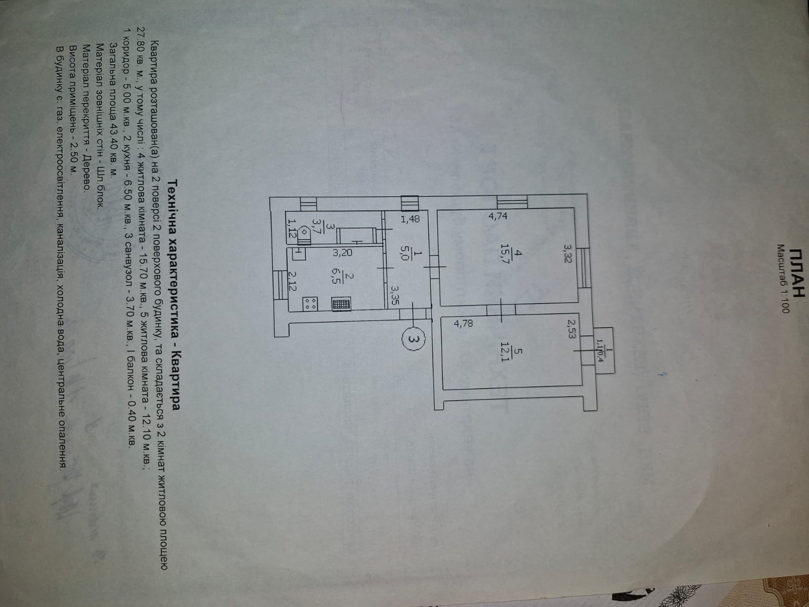 2-комнатная квартира, 43.4 м2, этаж 2 / 2, на продажу в Донецке, проспект Мира, 37