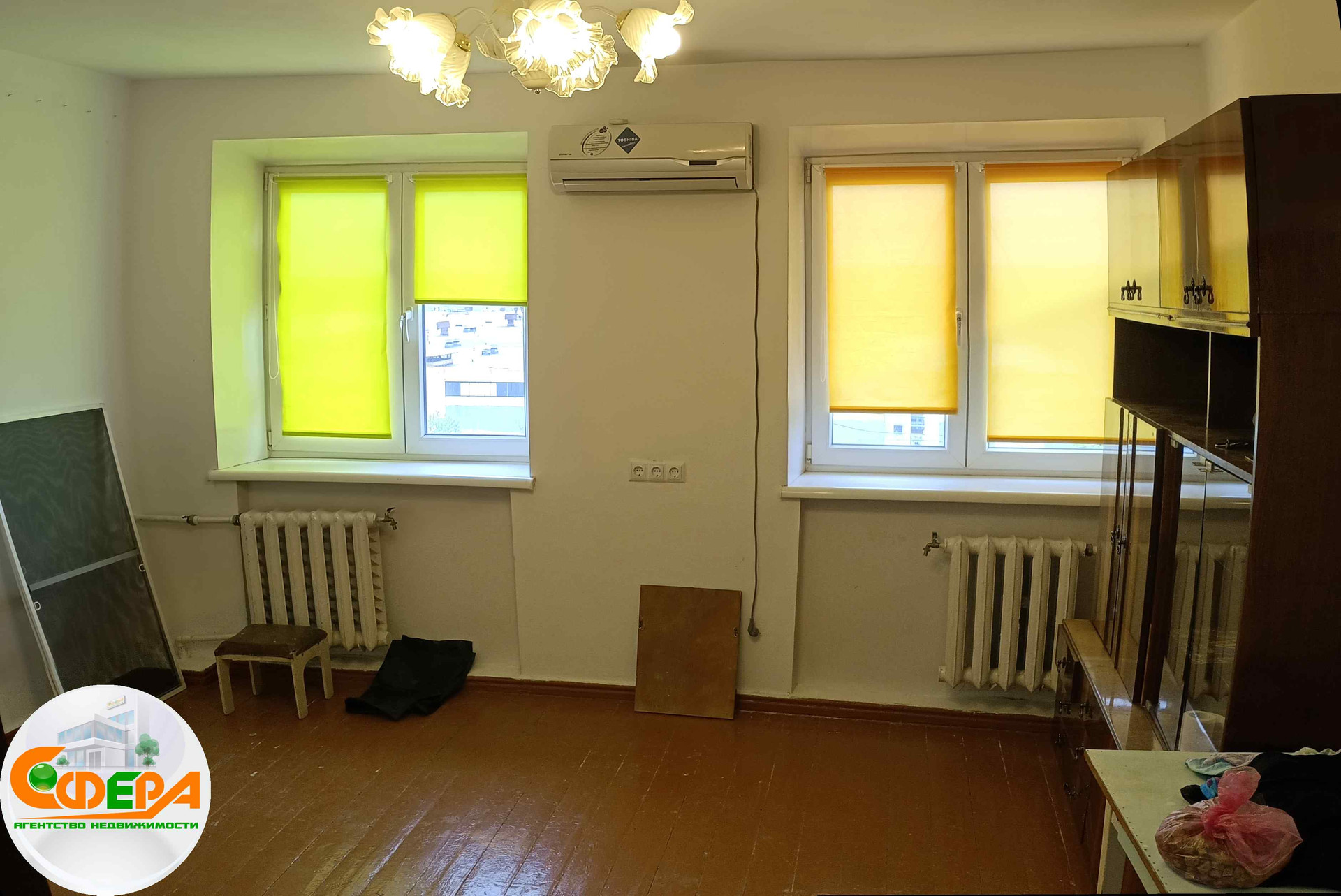 В гостинке остается вся необходимая мебель: кухонные шкафчики, шкаф, стол в жилой комнате, это позволит вам сэкономить на обустройстве нового жилья.