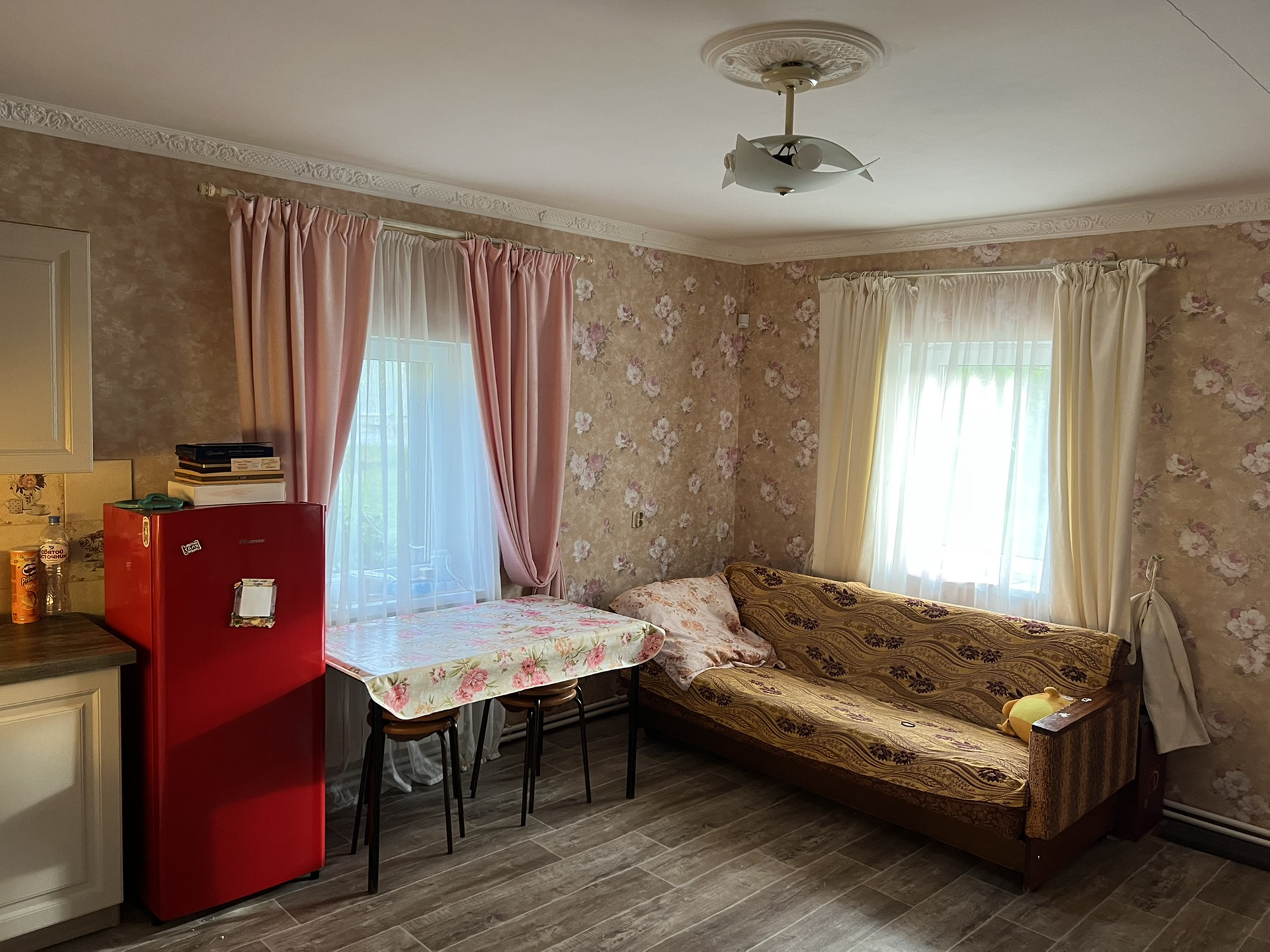 Полы ламинат по дереву. Крыша – ондулин.