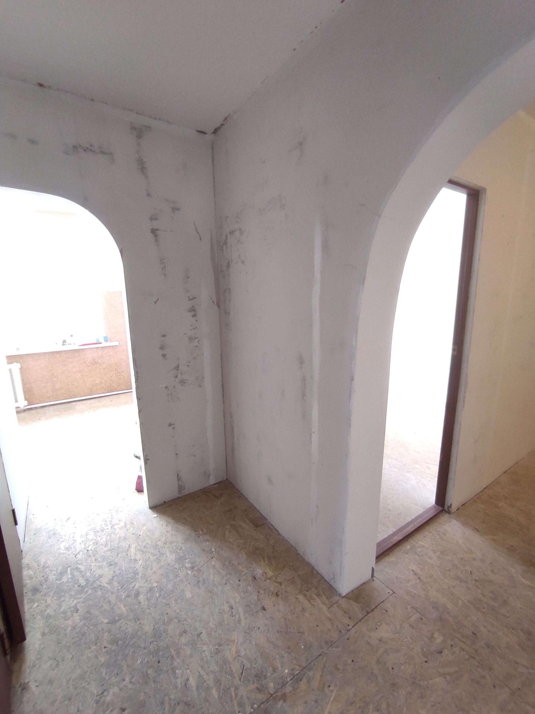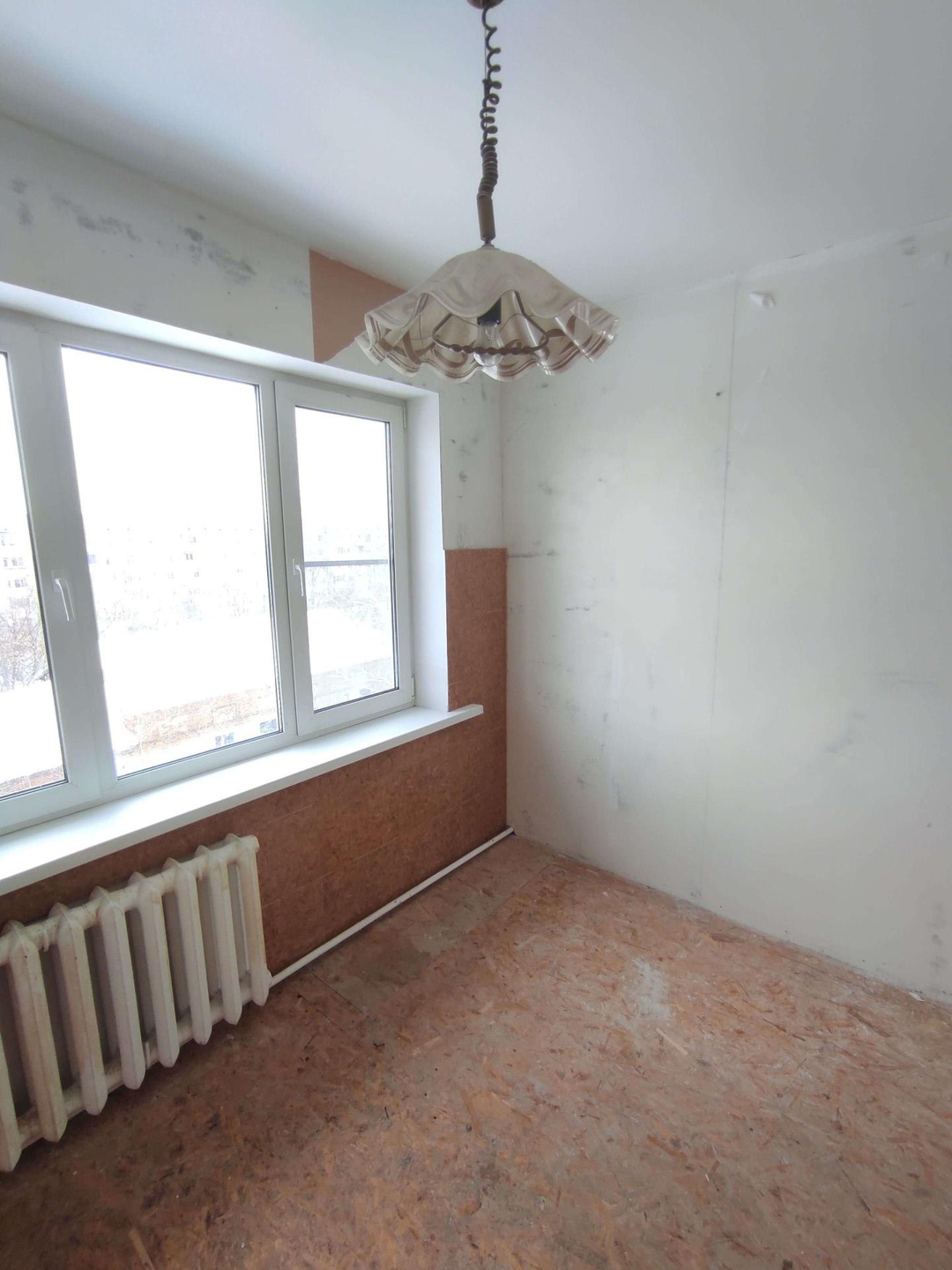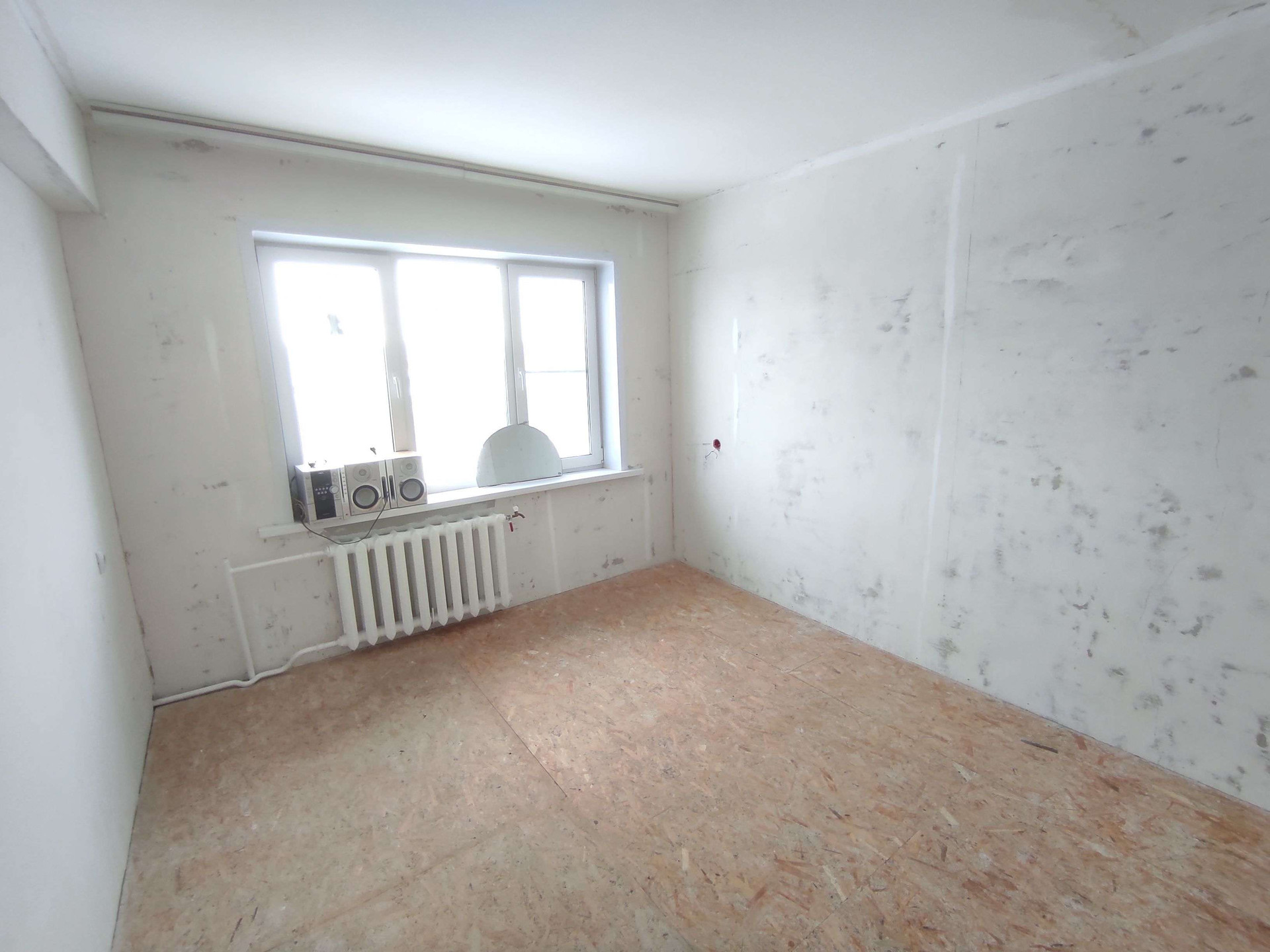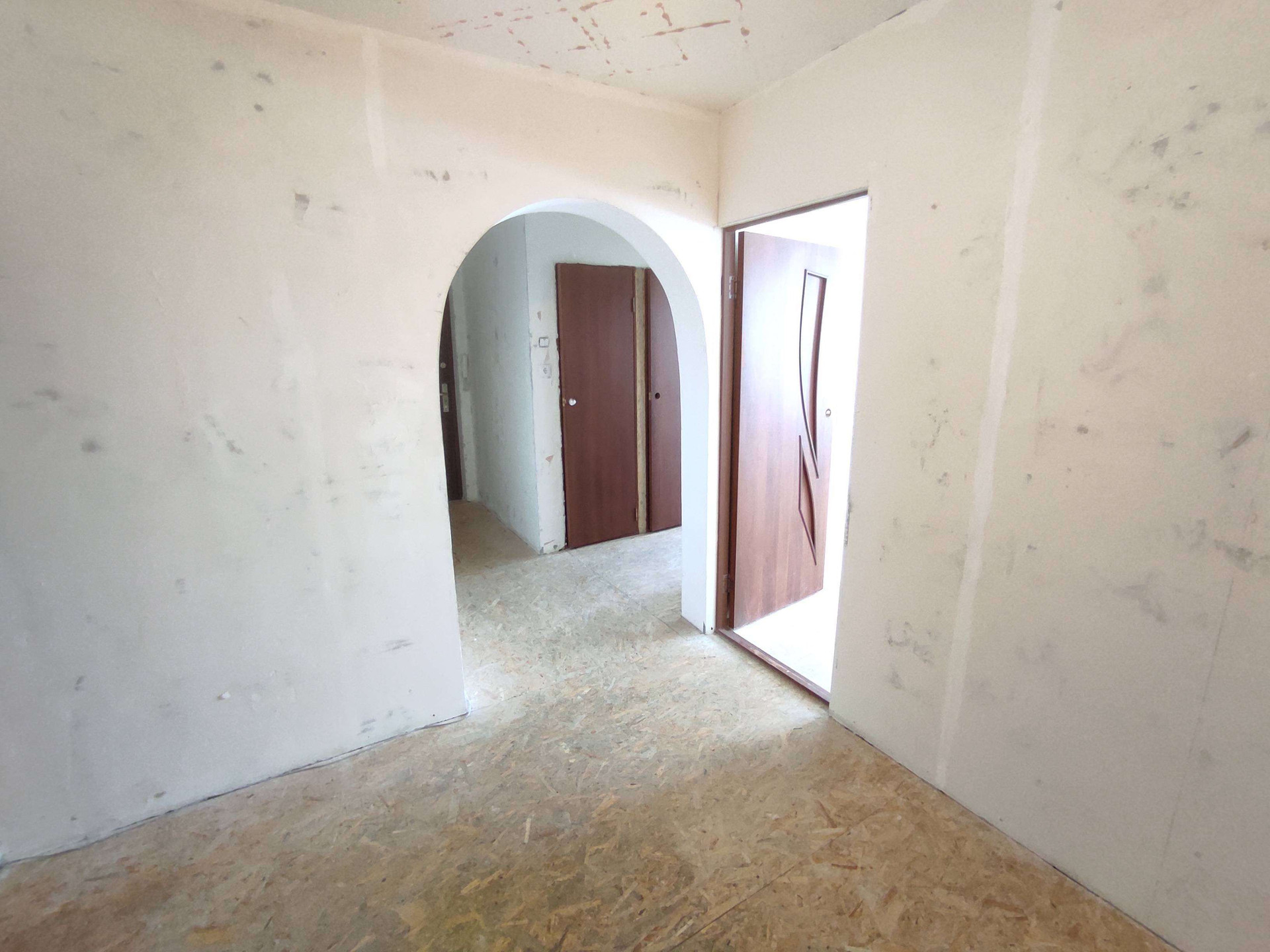 Квартира не угловая. Комнаты на разные стороны. Стены выровнены. На полу ДСП. Санузел раздельный и в плитке.