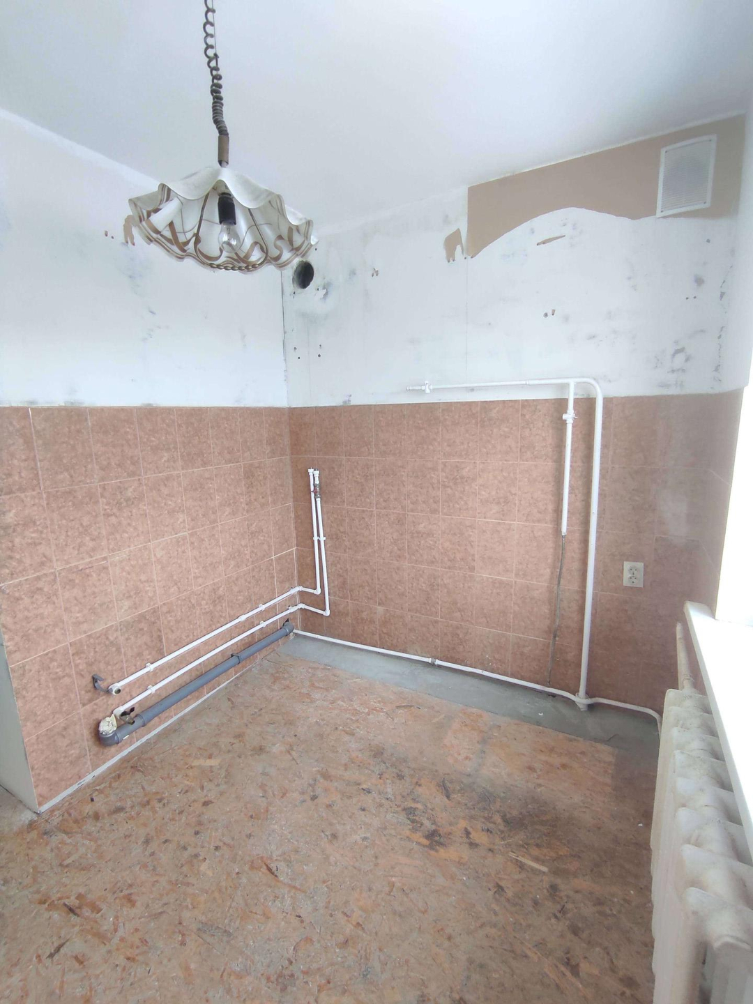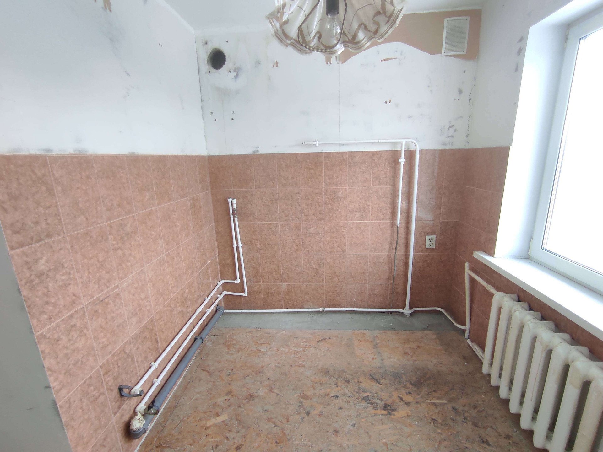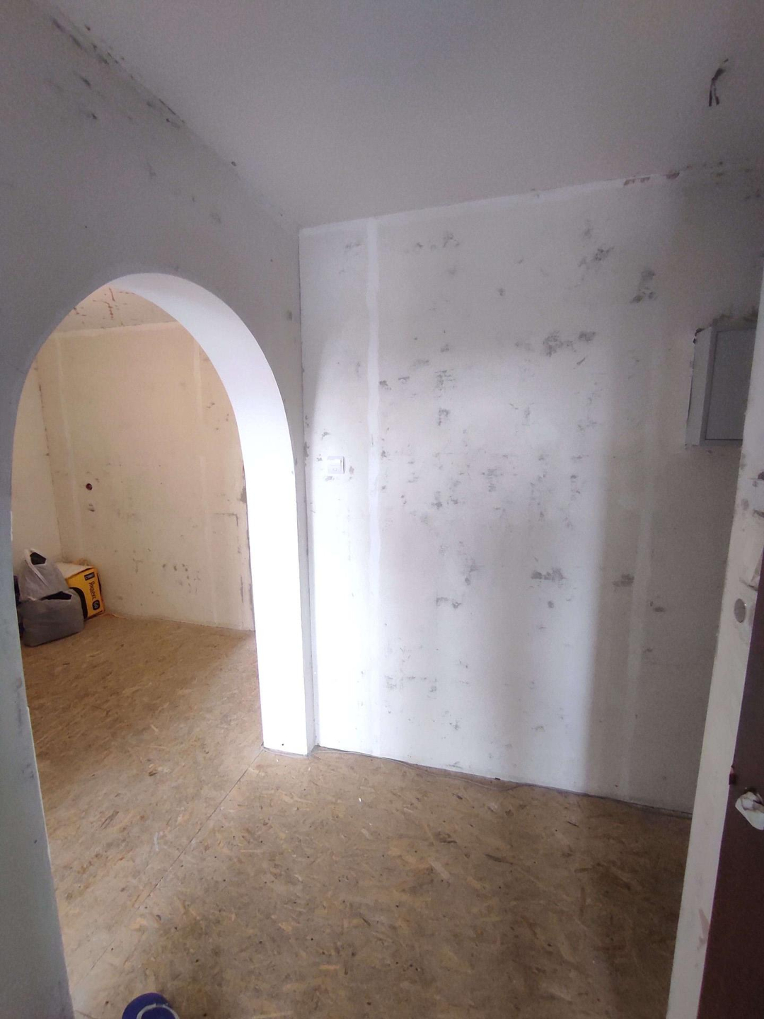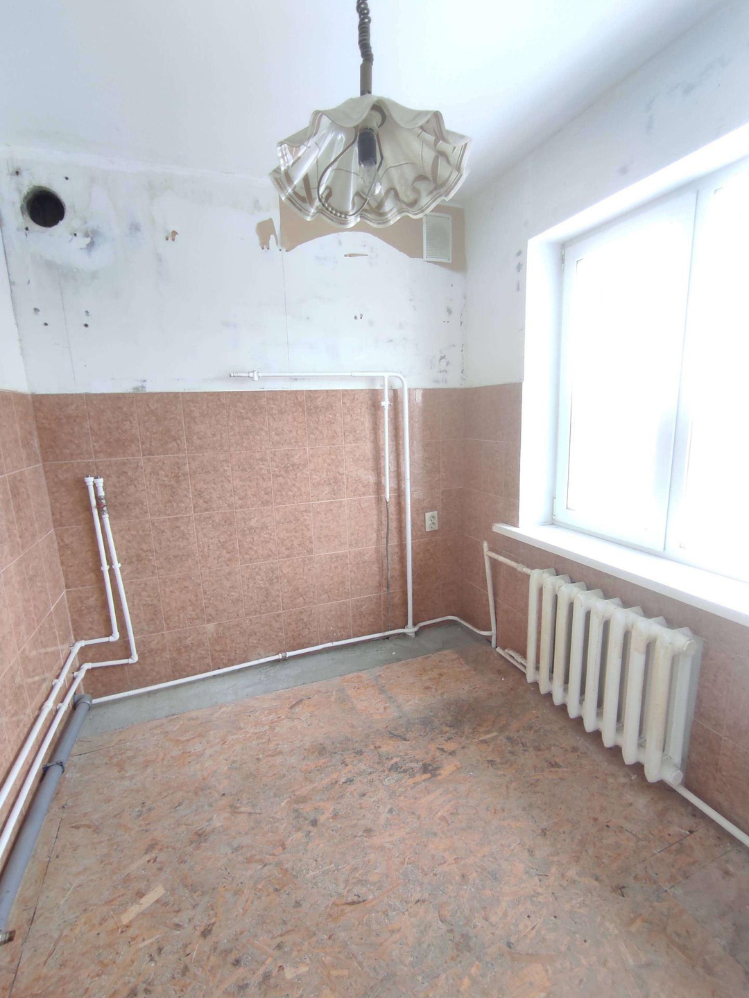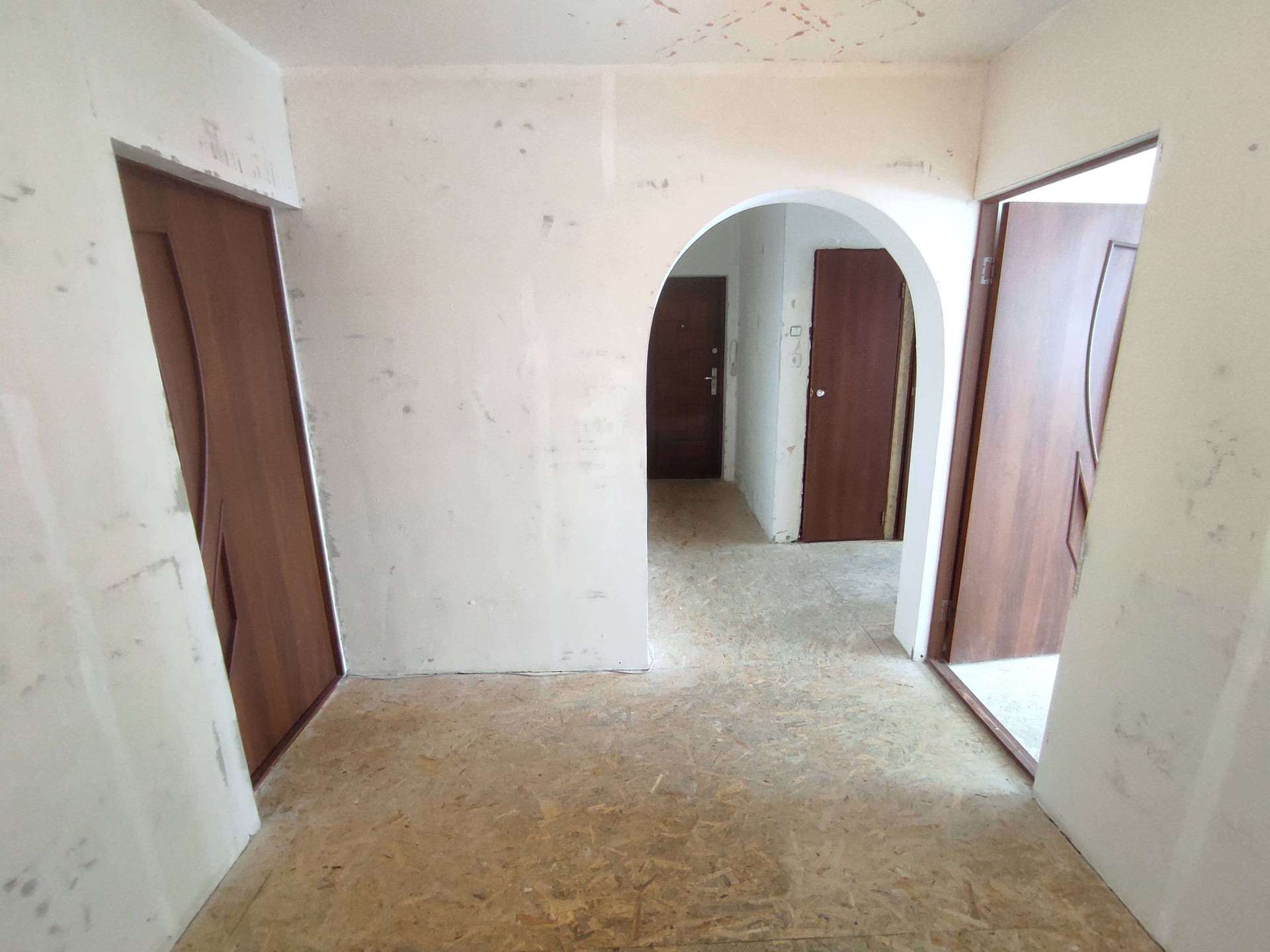 Квартира не угловая. Комнаты на разные стороны. Стены выровнены. На полу ДСП. Санузел раздельный и в плитке.