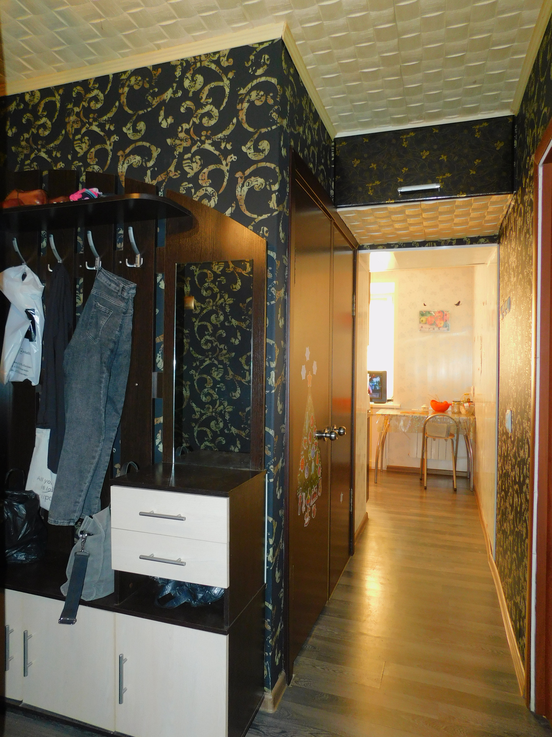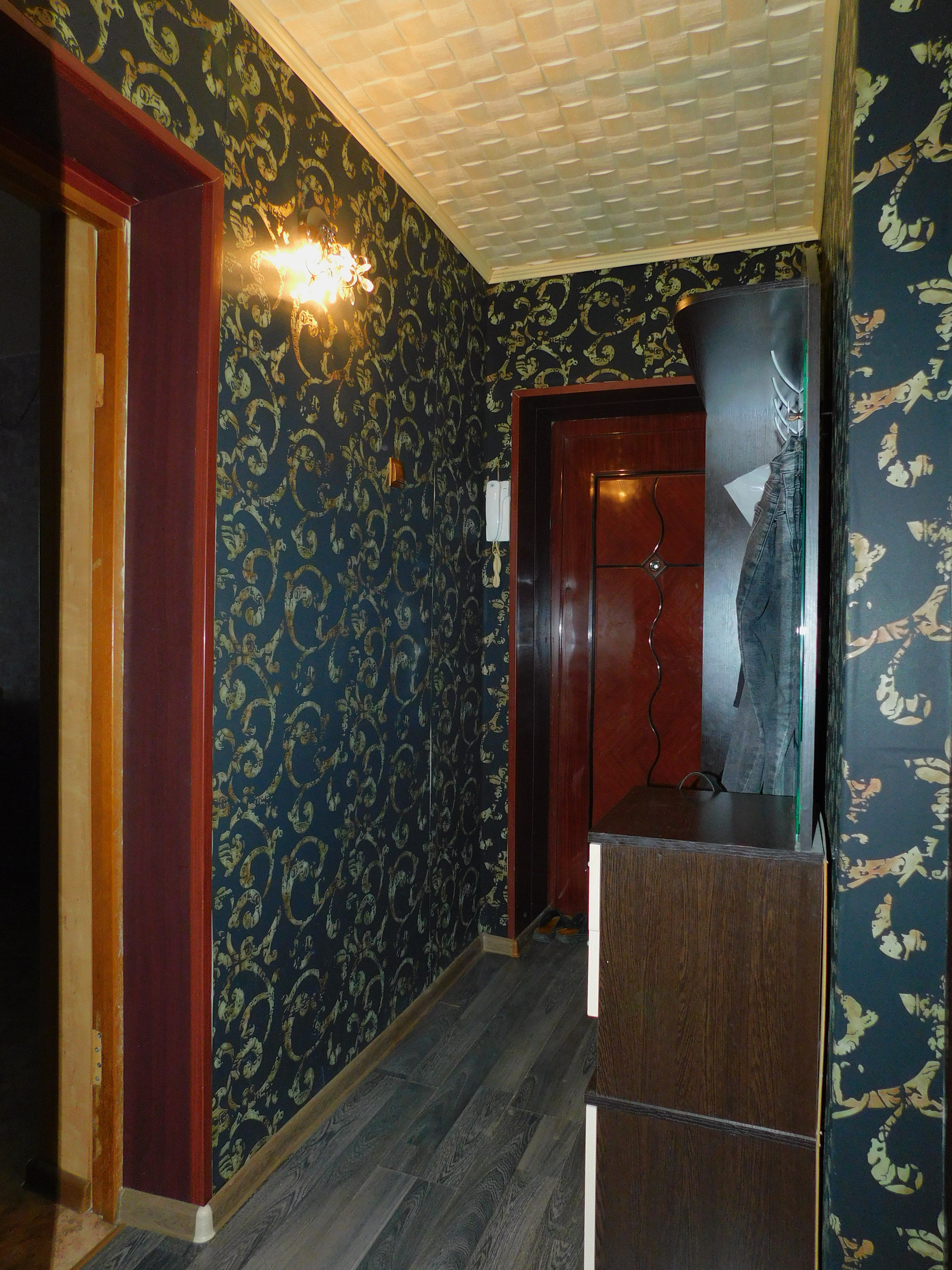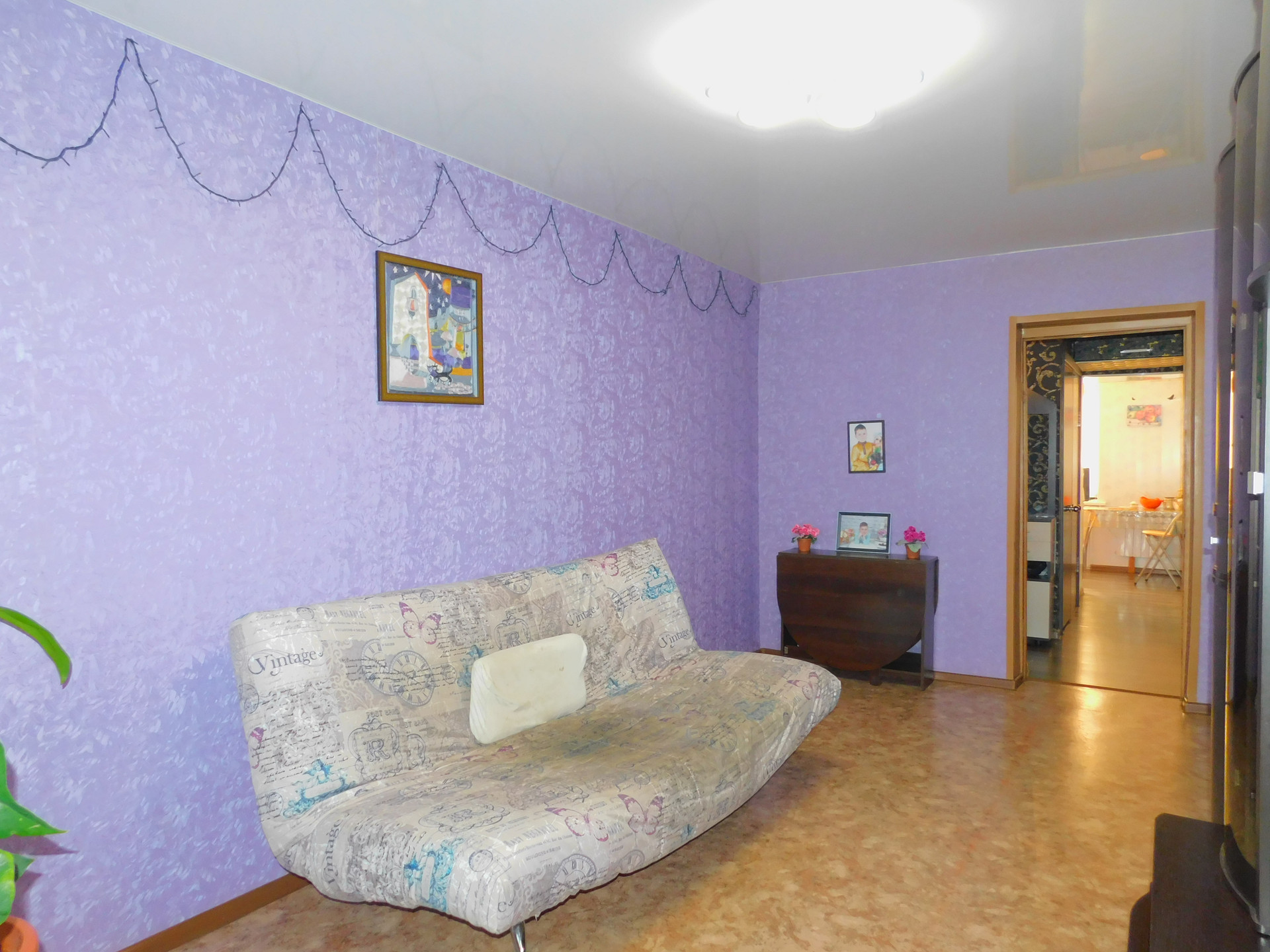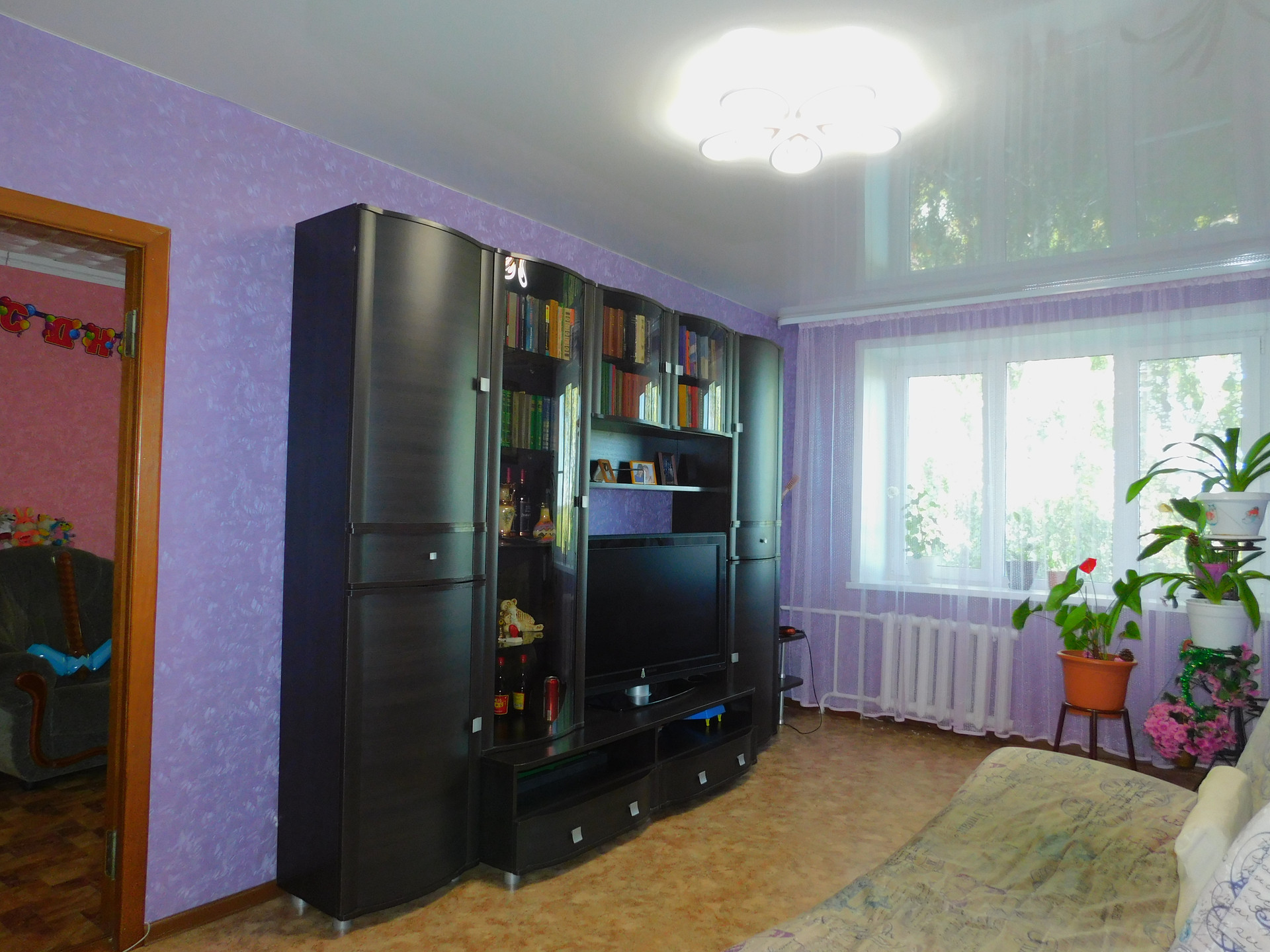 Потолки натяжные в 2-х комнатах, в ванной и на кухне.