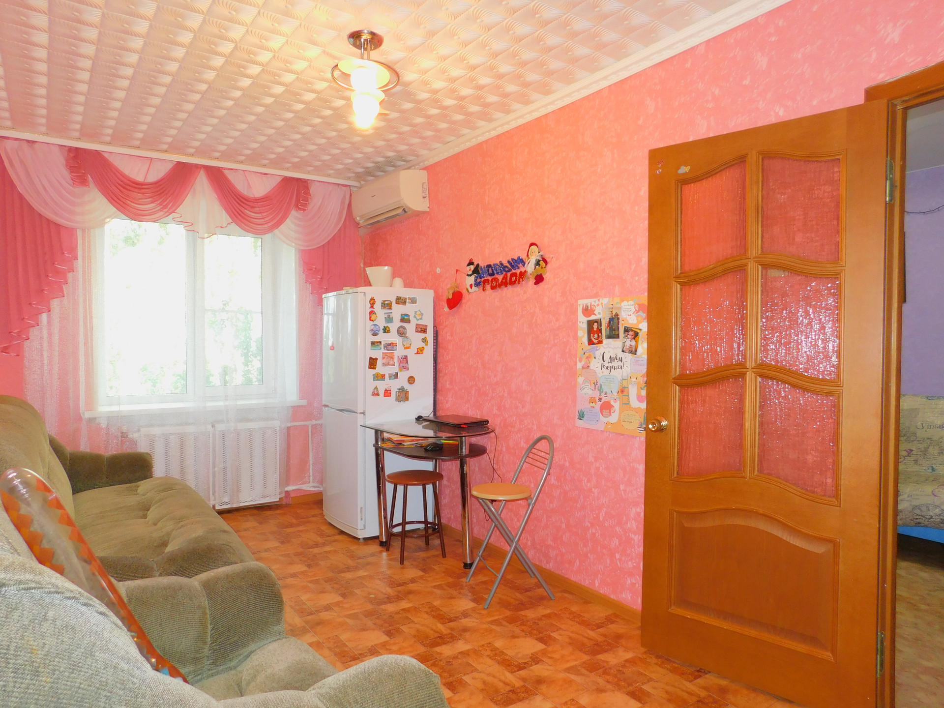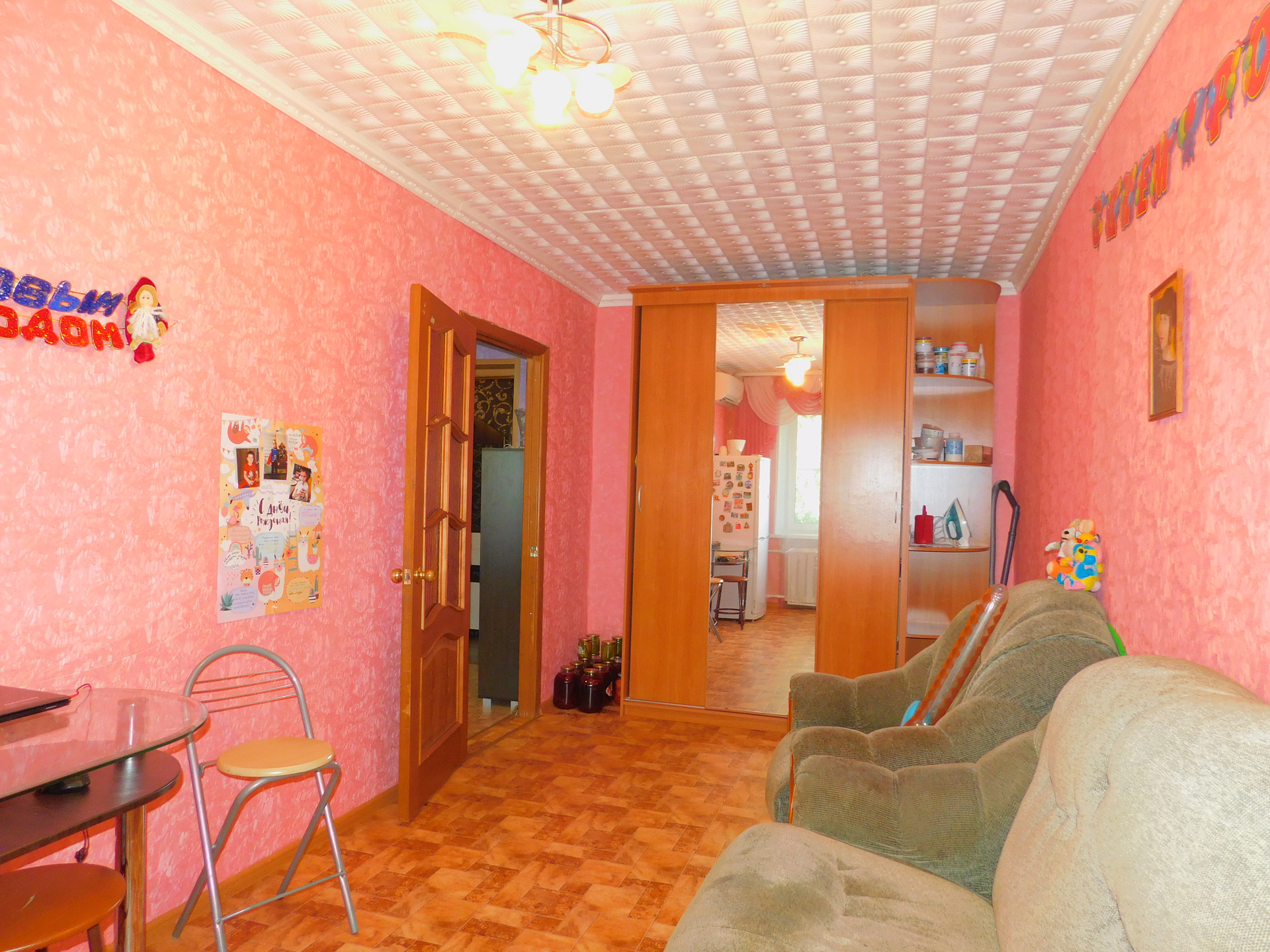 Полы- ламинат и линолеум. Стены выровнены.