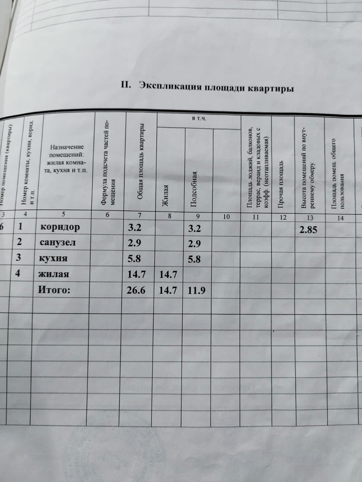 Общая площадь 26.6 м2