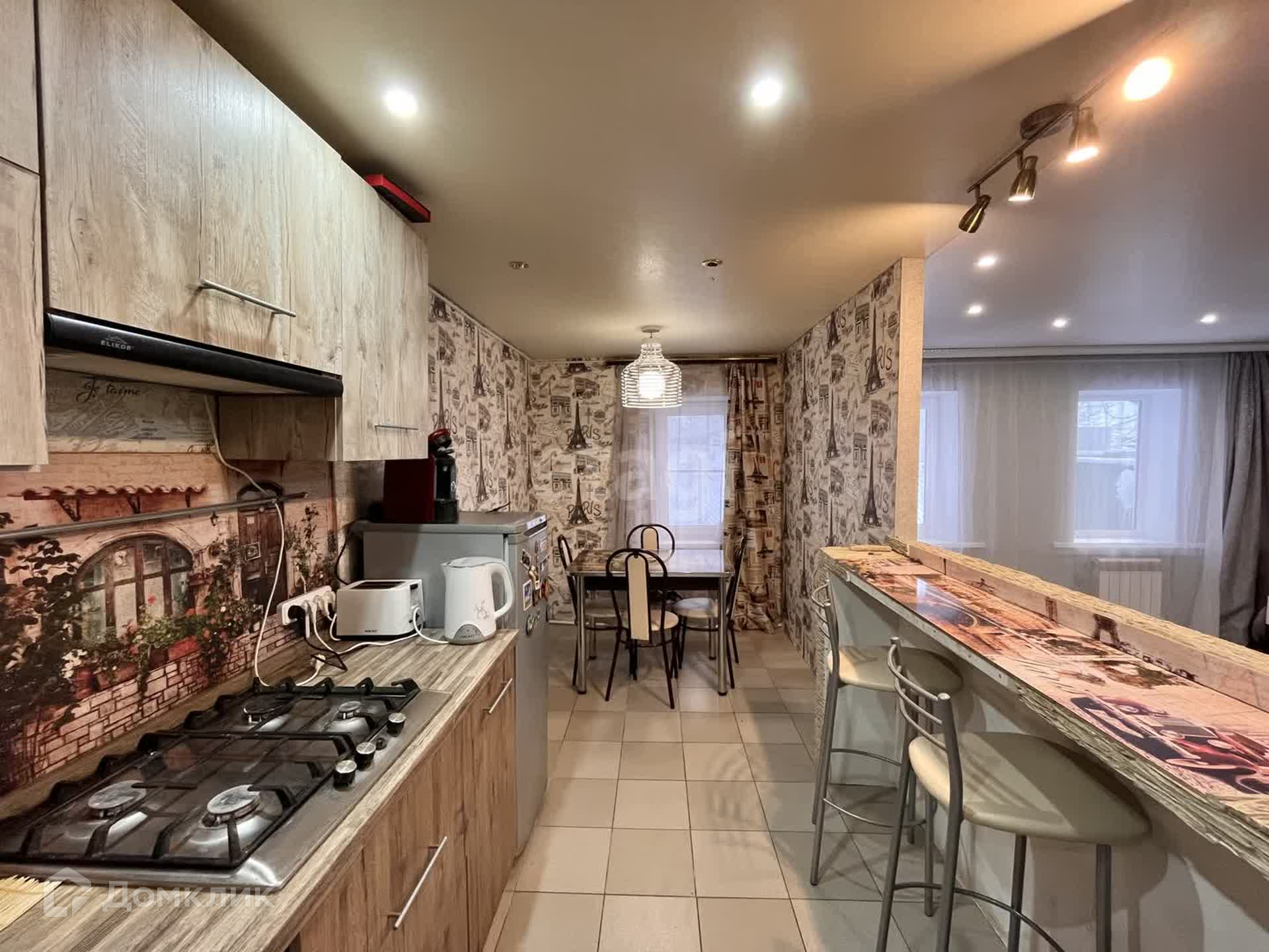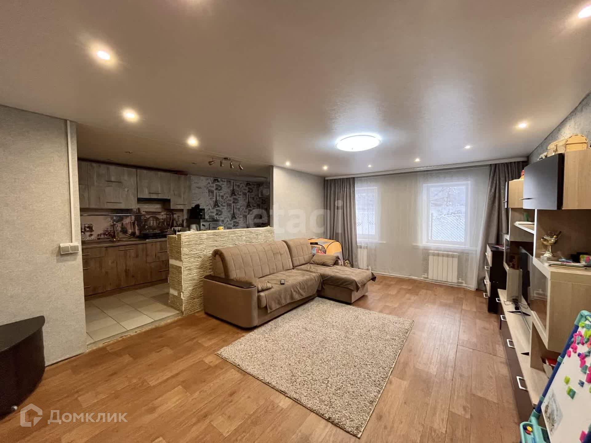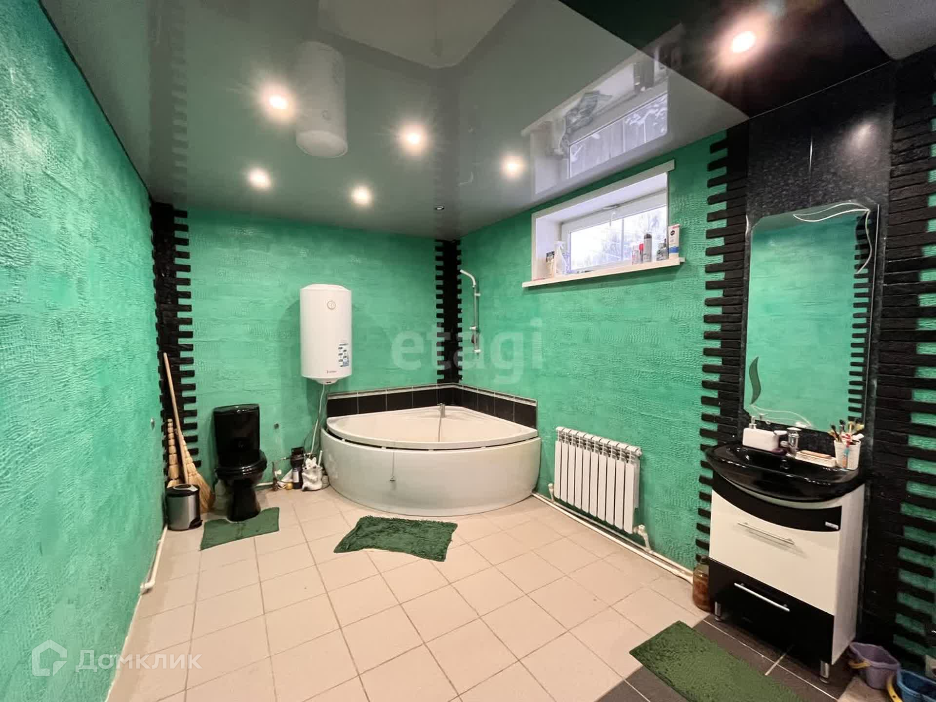 На первом этаже выполнен современный ремонт: теплый пол в коридоре и кухне, новая сантехника и система отопления, установлен двухконтурный газовый котел, натяжные потолки, окна ПВХ, совмещенный санузел площадью 18 кв.м