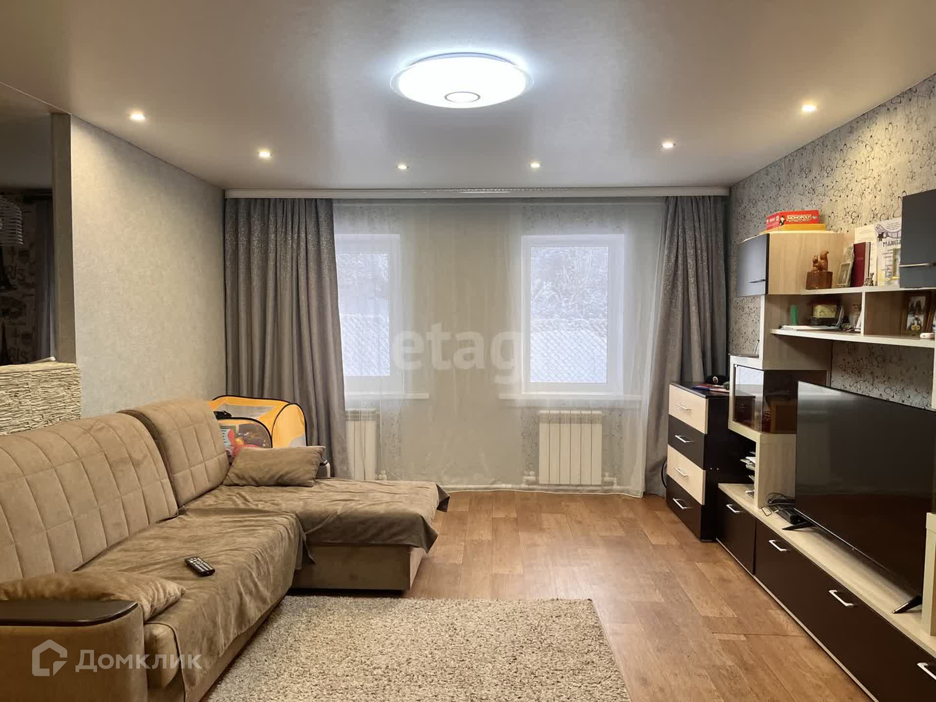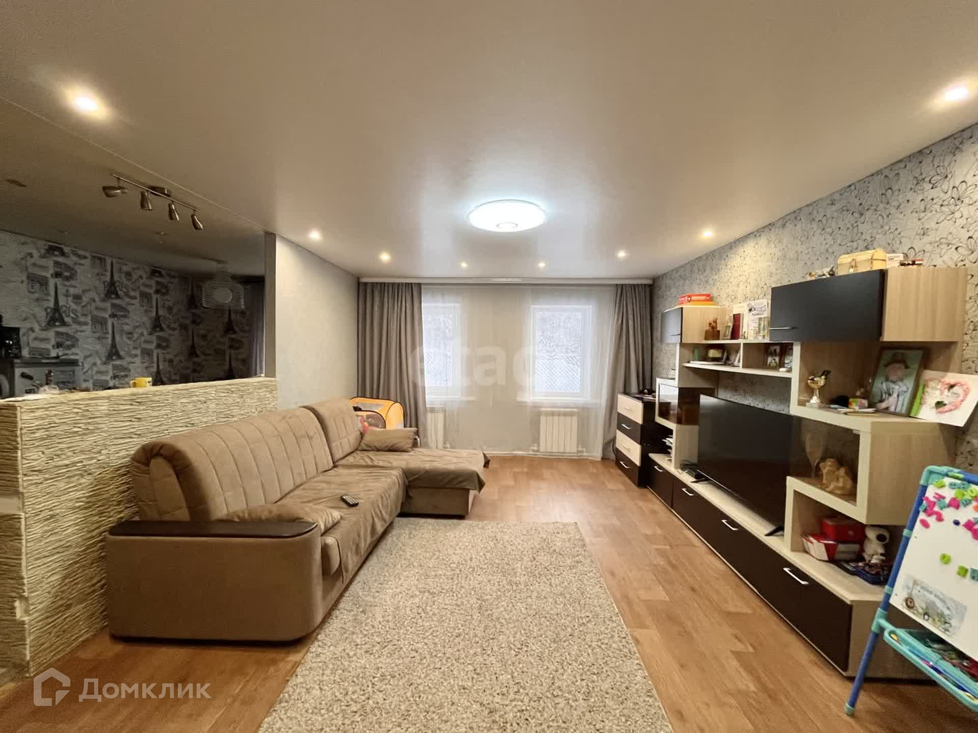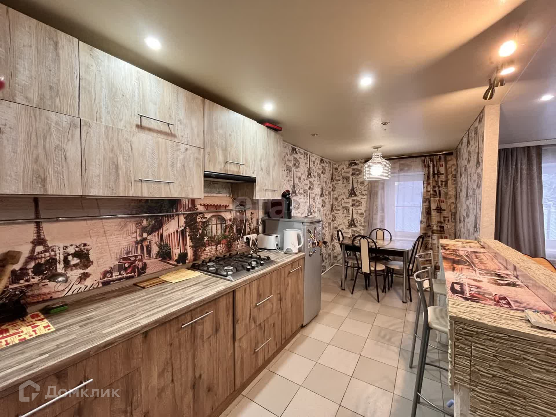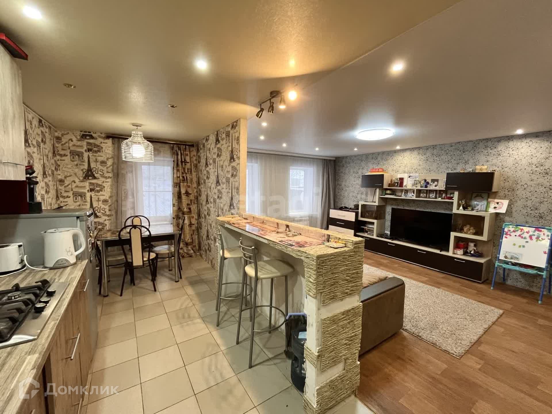 На первом этаже выполнен современный ремонт: теплый пол в коридоре и кухне, новая сантехника и система отопления, установлен двухконтурный газовый котел, натяжные потолки, окна ПВХ, совмещенный санузел площадью 18 кв.м
