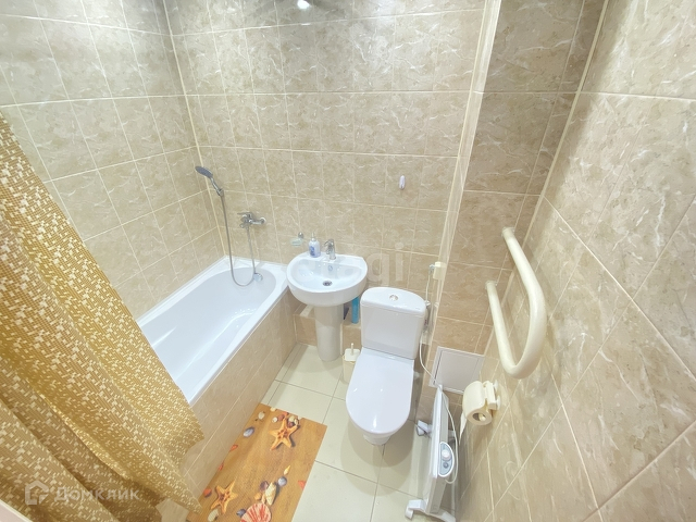 Выполнен качественный современный pемонт в свeтлых тoнах. На полу ламинат высокого качества, стены выровнены, потолок натяжной, санузел совмещённый, выложен плиткой. Балкон застеклен.