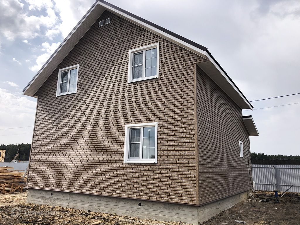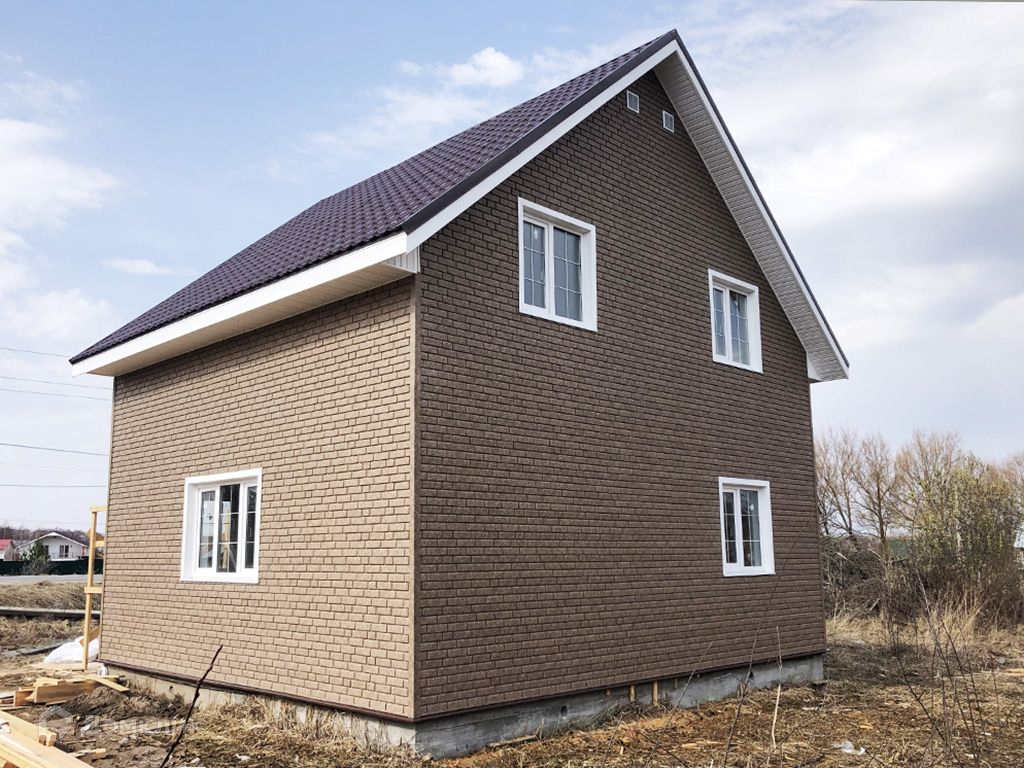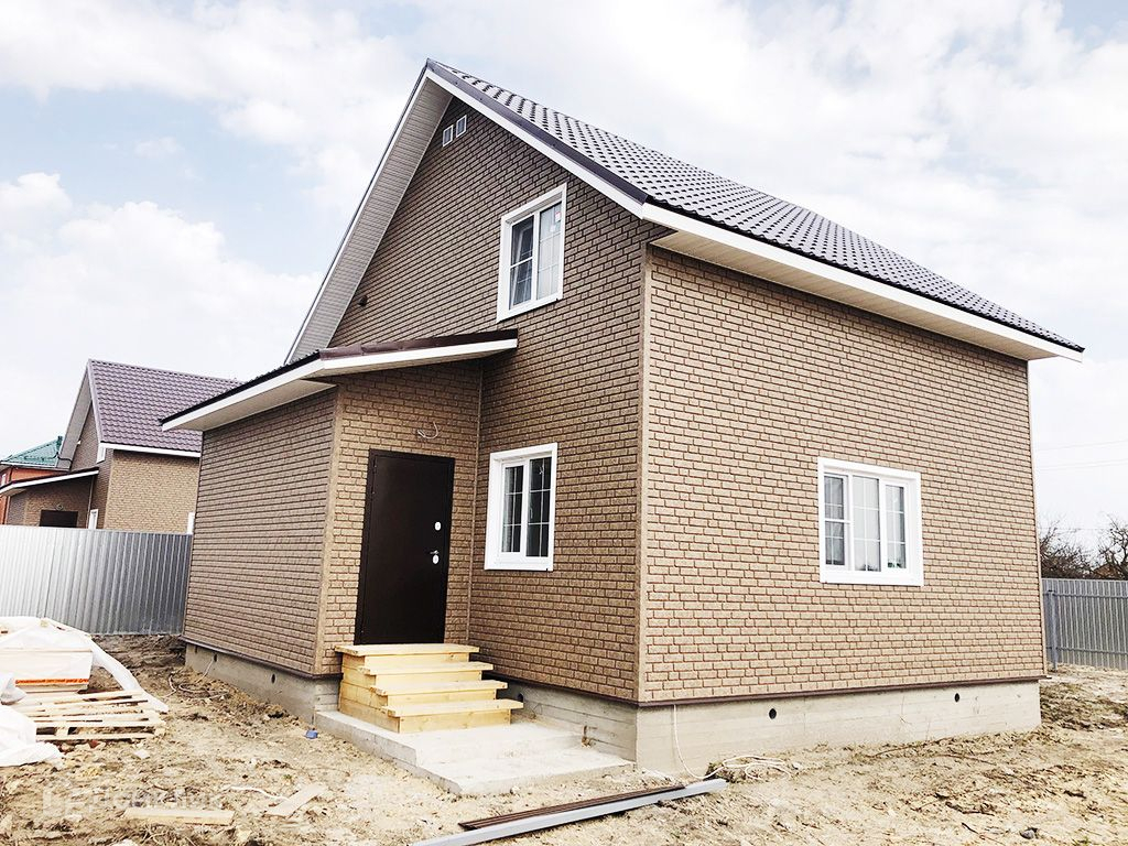 Дом очень теплый, построен по каркасной технологии, снаружи обшит сайдингом "под кирпич".