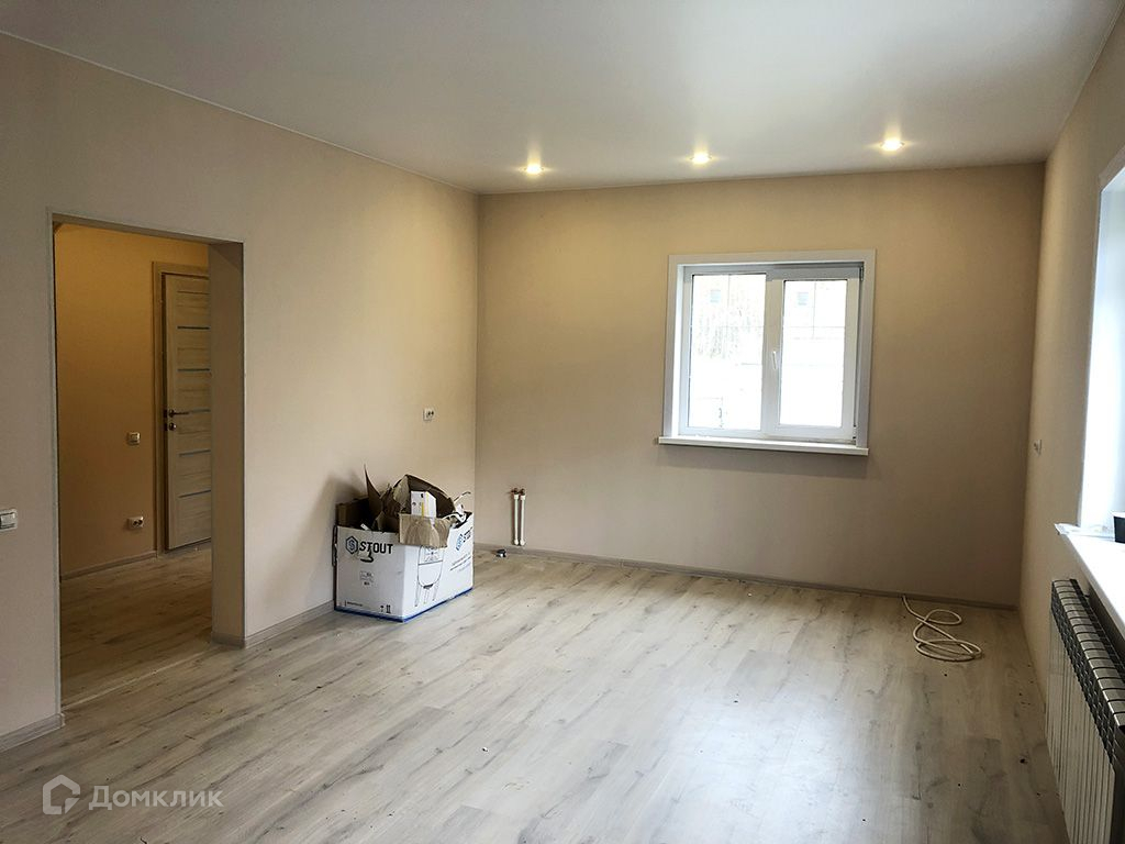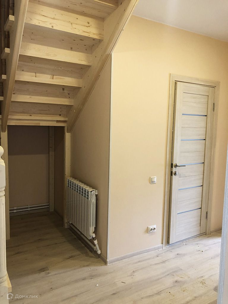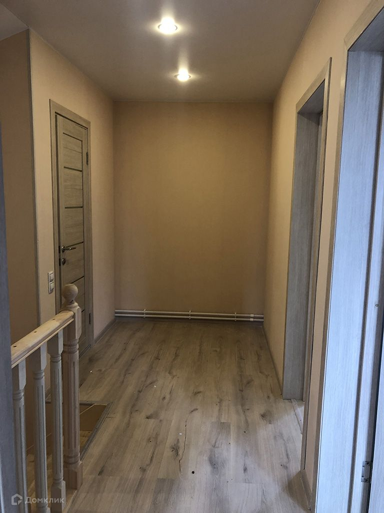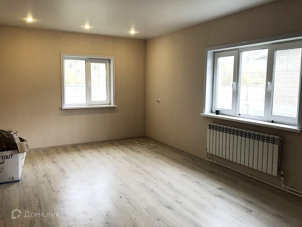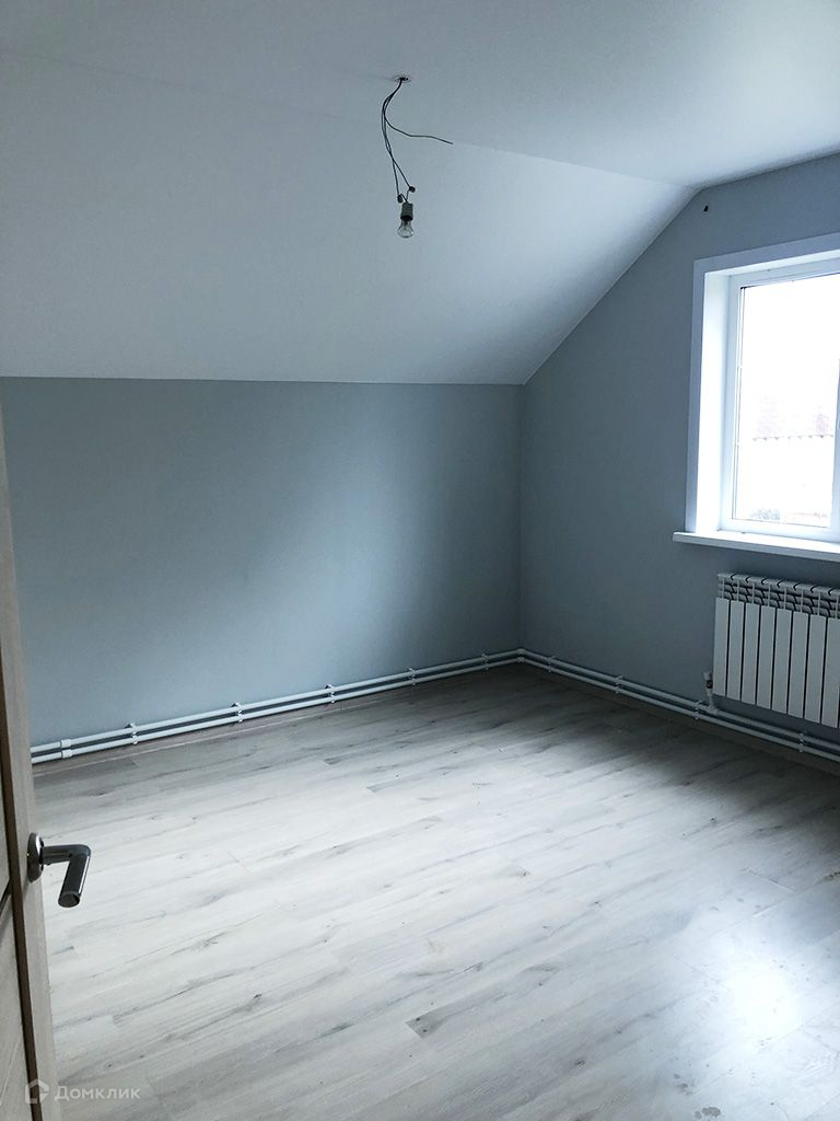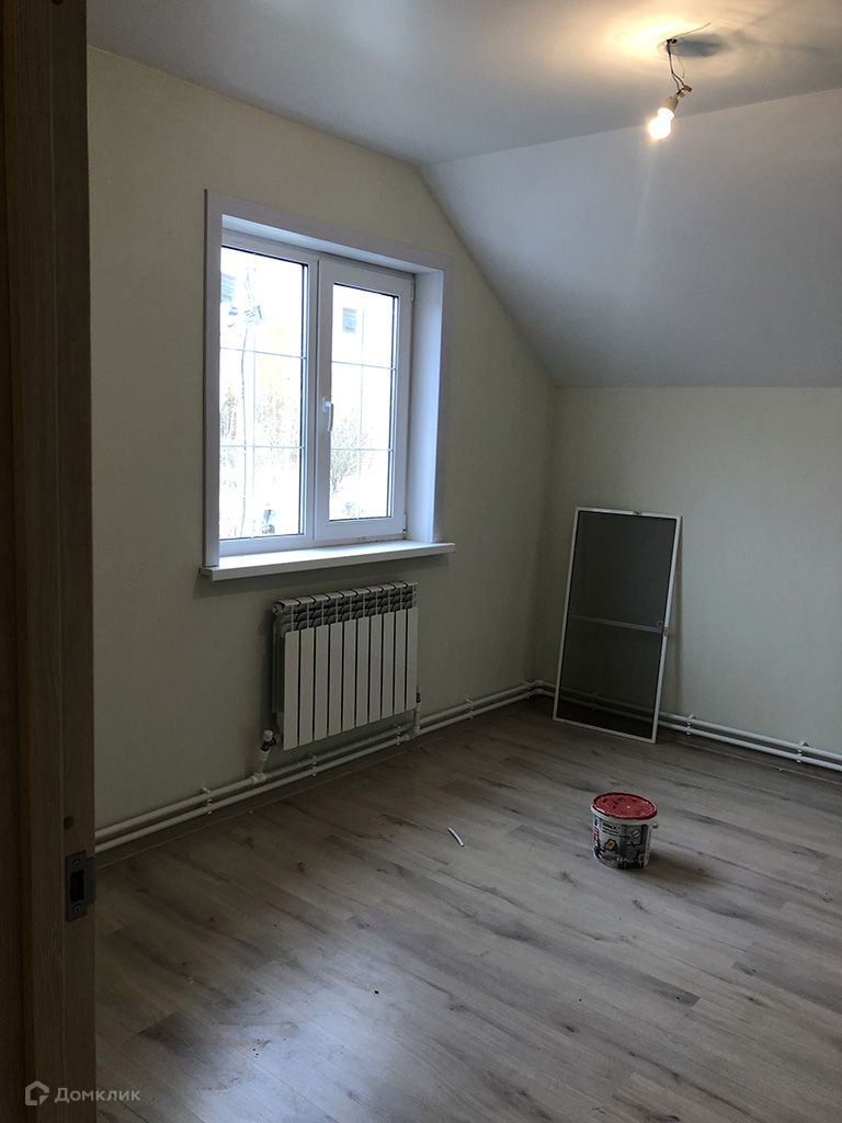 Стены оклеены обоями под покраску и окрашены, на полу ламинат, линолеум.1 этаж: прихожая, кухня-гостиная, спальня, котельная, санузел.2 этаж: 3 спальни, санузел.Коммуникации: электричество 380 В (15кВт), водоснабжение - скважина, канализация - септик.