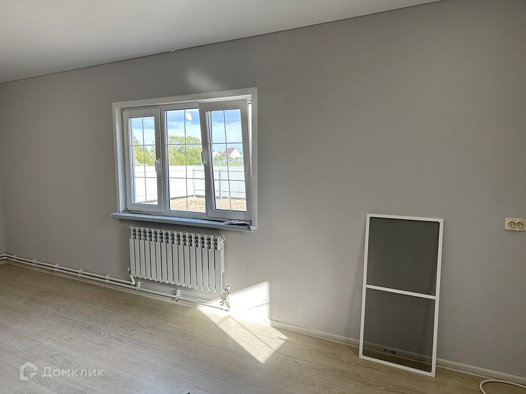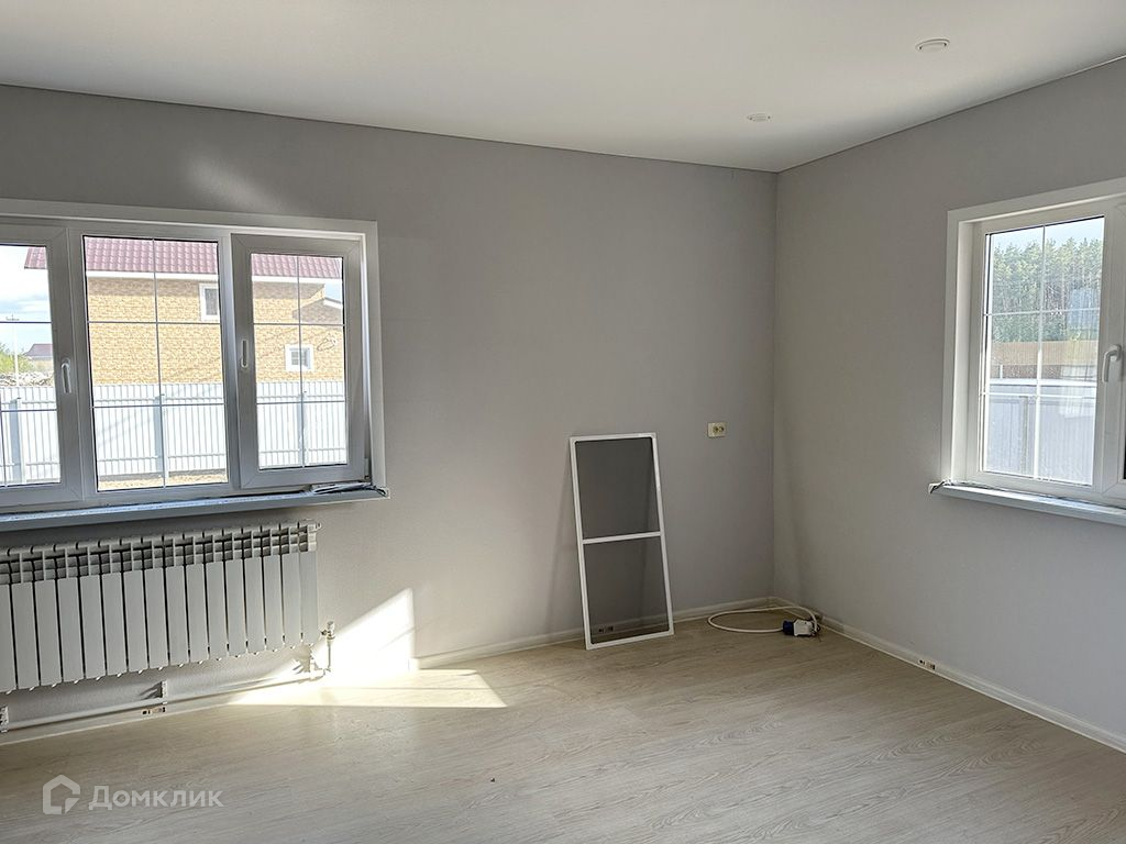 Стены оклеены обоями под покраску и окрашены, на полу ламинат.1 этаж: прихожая, кухня-гостиная, спальня, котельная, санузел.2 этаж: 3 спальни, санузел.Коммуникации: электричество 380 В (15кВт), водоснабжение - скважина, канализация - септик.