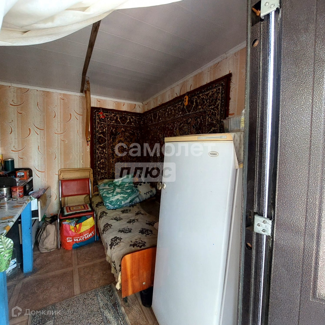 На участке имеется небольшой деревянный летний домик с двумя комнатами. В доме имеется холодильник, два дивана. Окна ПВХ, металлическая дверь. Электричество заведено, площадь дома 20 кв.м. Помимо дома есть помещение для хранения инвентаря.