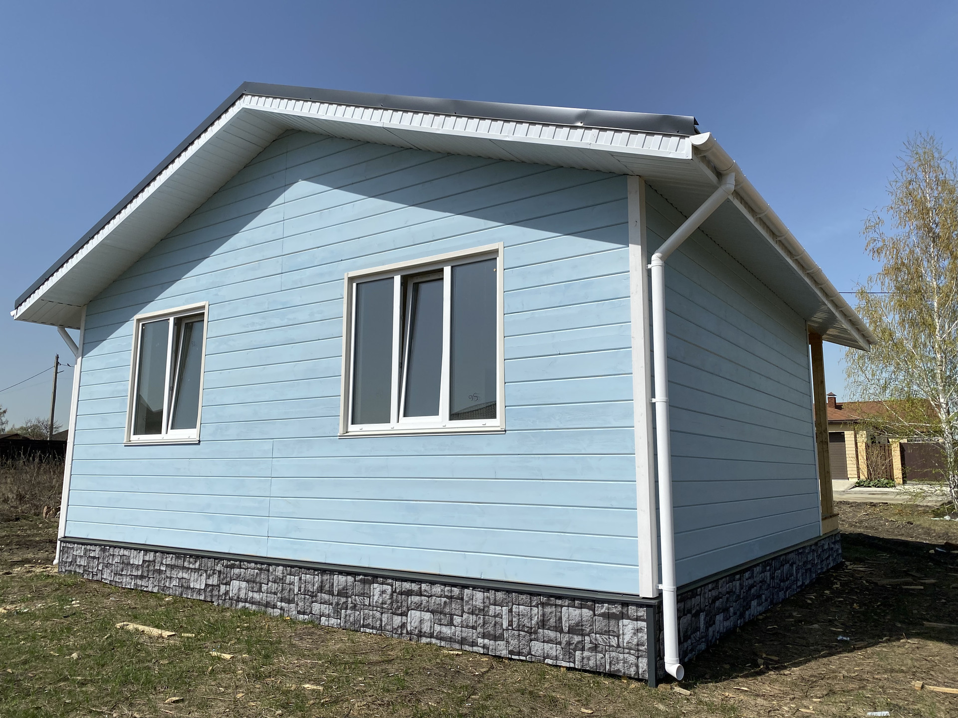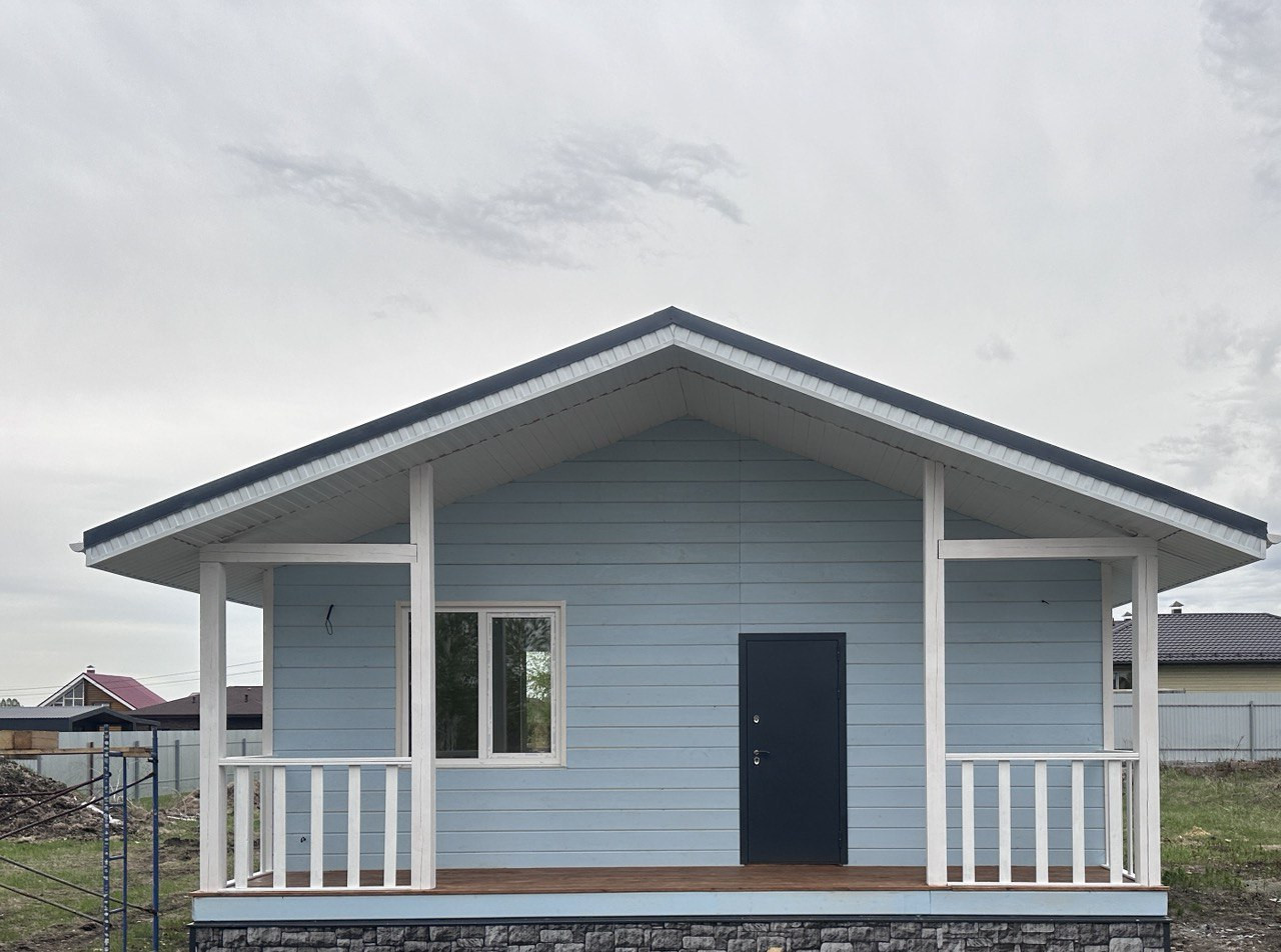 — Плoщадь дома: 40,6 м2 (гостинная+кухня 20 м2., спальня 10 м2, сан.узел 4,3 м2, коридор 4,4 м2)