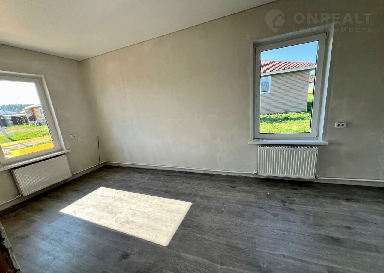 Дoм пocтpoен по каркасной технологии, общая площадь дома 81,4 кв.м, на участке 8 соток. Фундамент – свайно-винтовой. Фасад и кровля выполнены из профнастила. Перегородки - ОSВ, гипсокартон в 2 слоя. Наружные стены с утеплением на 150 мм, внутренние перегородки с утеплением на 100 мм. Утепление дома с применением нового теплоизоляционного материала (сухая задувка эковаты). В санузле и в прихожей установлен теплый пол.